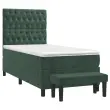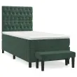 Uporabite to box spring posteljo za uživanje v mirnem spancu! Ponuja maksimalno sprostitev in prijeten spanec. Mehak žamet: Žamet je mehka in razkošna tkanina, ki jo prepoznamo po gostem kupu enakomerno rezanih gladkih vlaken. Žametna tkanina ima značilen mehak občutek, zaradi česar je prijetna na dotik.Praktično vzglavje: Vzglavje postelje je nastavljivo po višini po vaših željah. To vzglavje za posteljo vam zagotavlja odlično oporo za hrbet, ko sedite na postelji in berete ali gledate filme.Ležišče z žepkastimi vzmetmi: Vgrajena individualna žepkasta vzmet je znana po zelo visoki kakovosti, hkrati pa zagotavlja visoko stopnjo vzdržljivosti in prilagodljivosti. Lahko učinkovito absorbira hrup in udarce, ki jih povzročata metanje in obračanje.Srednje trda opora: Posteljna vzmetnica odlično zagotavlja dodatno stabilnost in ravno pravšnjo stopnjo čvrstosti, ne da bi pri tem žrtvovala udobje. Zato je idealna za tiste, ki spijo na hrbtu ali trebuhu.Koži prijazen nadvložek: Zaščita za ležišče ima trpežno in koži prijazno tkanino, zaradi česar je mehka in udobna.Večnamenska klop: Ta klop lahko služi kot dodaten sedež v vašem domu. Lahko se uporablja tudi kot zaključek posteljne klopi. Opomba:Zaradi higienskih razlogov vzmetnice ni mogoče vrniti po odstranitvi ali odprtju embalaže.Vsakemu izdelku je priložen priročnik za enostavno sestavljanje.Postelja:Barva: Temno zelenaMaterial: Žamet (100 % poliester), vezan les, konstruiran lesDimenzije: 203 x 100 x 118/128 cm (D x Š x V)Vzmetnica za posteljo:Barva: Temno zelena in belaMaterial: Žamet (100 % poliester)Material polnila: Žepkaste vzmeti, penaDimenzije: 100 x 200 x 20 cm (Š x D x V)Nadvložek:Barva: BelaMaterial: Blago (100 % poliester)Material polnila: PenaDimenzije: 100 x 200 x 5 cm (Š x D x V)Klop:Barva: Temno zelenaMaterial: Žamet (100 % poliester), vezan les, konstruiran lesDimenzije: 70 x 30 x 30 cm (Š x G x V)Paket vsebuje:1 x Posteljni okvir1 x Vzglavje1 x Vzmetnica1 x Nadvložek1 x Klop 3138010