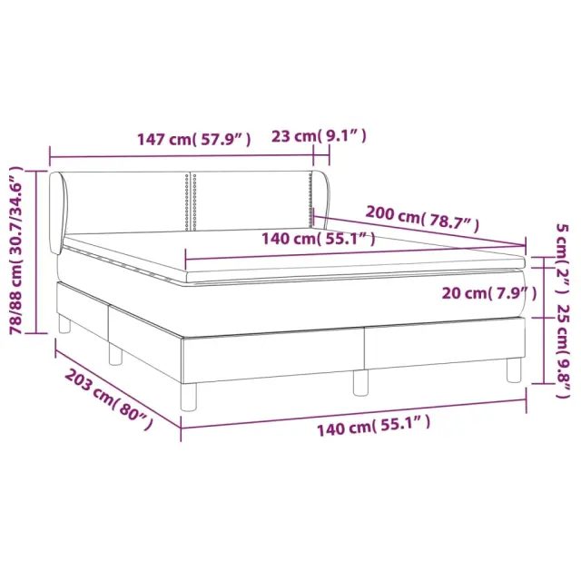 Uporabite to box spring posteljo za uživanje v mirnem spancu! Ponuja maksimalno sprostitev in prijeten spanec. Mehak žamet: Žamet je mehka in razkošna tkanina, ki jo prepoznamo po gostem kupu enakomerno rezanih gladkih vlaken. Žametna tkanina ima značilen mehak občutek, zaradi česar je prijetna na dotik.Praktično vzglavje: Vzglavje postelje je nastavljivo po višini po vaših željah. To vzglavje za posteljo vam zagotavlja odlično oporo za hrbet, ko sedite na postelji in berete ali gledate filme.Ležišče z žepkastimi vzmetmi: Vgrajena individualna žepkasta vzmet je znana po zelo visoki kakovosti, hkrati pa zagotavlja visoko stopnjo vzdržljivosti in prilagodljivosti. Lahko učinkovito absorbira hrup in udarce, ki jih povzročata metanje in obračanje.Srednje trda opora: Posteljna vzmetnica odlično zagotavlja dodatno stabilnost in ravno pravšnjo stopnjo čvrstosti, ne da bi pri tem žrtvovala udobje. Zato je idealna za tiste, ki spijo na hrbtu ali trebuhu.Koži prijazen nadvložek: Zaščita za ležišče ima trpežno in koži prijazno tkanino, zaradi česar je mehka in udobna. Opomba:Zaradi higienskih razlogov vzmetnice ni mogoče vrniti po odstranitvi ali odprtju embalaže.Vsakemu izdelku je priložen priročnik za enostavno sestavljanje.Postelja:Barva: Temno zelenaMaterial: Žamet (100 % poliester), trden macesnov les, vezan les, inženirski lesDimenzije: 203 x 147 x 78/88 cm (D x Š x V)Vzmetnica za posteljo:Barva: Bela in temno zelenaMaterial: Žamet (100 % poliester)Material polnila: Žepkaste vzmeti, penaDimenzije: 140 x 200 x 20 cm (Š x D x V)Nadvložek:Barva: BelaMaterial nadvložka: Blago (100 % poliester)Material polnila: PenaDimenzije: 140 x 200 x 5 cm (Š x D x V)Paket vsebuje:1 x Posteljni okvir1 x Vzglavje z ušesi1 x Vzmetnica1 x Nadvložek 3127436