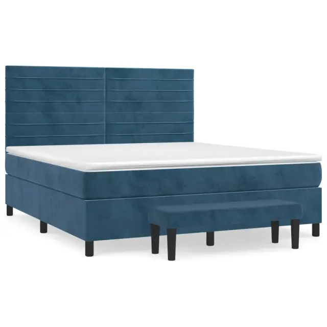vidaXL Box spring postelja z vzmetnico temno modra 160x200 cm žamet