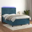 Uporabite to box spring posteljo z vzmetnico in LED osvetlitvijo in uživajte v mirnem spancu! To bo osrednja točka vaše spalnice. Mehak žamet: Žamet je mehka in razkošna tkanina, ki jo prepoznamo po gostem kupu enakomerno rezanih gladkih vlaken. Žametna tkanina ima značilen mehak občutek, zaradi česar je prijetna na dotik.Praktično vzglavje: Vzglavje postelje je nastavljivo po višini po vaših željah. To vzglavje za posteljo vam zagotavlja odlično oporo za hrbet, ko sedite na postelji in berete ali gledate filme.Barvit LED trak: Vnesite igrivost v temo z barvitimi LED lučkami!Ležišče z žepkastimi vzmetmi: Vgrajena individualna žepkasta vzmet je znana po zelo visoki kakovosti, hkrati pa zagotavlja visoko stopnjo vzdržljivosti in prilagodljivosti. Lahko učinkovito absorbira hrup in udarce, ki jih povzročata metanje in obračanje.Koži prijazen nadvložek: Zaščita za ležišče ima trpežno in koži prijazno tkanino, zaradi česar je mehka in udobna. Opomba:Zaradi higienskih razlogov vzmetnice ni mogoče vrniti po odstranitvi ali odprtju embalaže.Režete lahko samo del s simbolom škarij in samo del z USB bo deloval kot prej.Vsakemu izdelku je priložen priročnik za enostavno sestavljanje.Izdelek ima priključek USB, vendar certificiran 5V vir napajanja USB ni priložen.Postelja:Barva: Temno modraMaterial: Žamet (100 % poliester), vezan les, inženirski les, trden macesnov lesCelotne dimenzije: 203 x 144 x 118/128 cm (D x Š x V)Vzmetnica za posteljo:Barva: Bela in temno modraMaterial: Žamet (100 % poliester)Material polnila: Žepkaste vzmeti, penaDimenzije: 140 x 200 x 20 cm (Š x D x V)Nadvložek:Barva: BelaMaterial nadvložka: Blago (100 % poliester)Material polnila: PenaDimenzije: 140 x 200 x 5 cm (Š x D x V)LED trak:Dolžina (vsak): 55 cmNapetost: DC 5 VDolžina kabla USB : 150 cmDolžina električnega kabla: 30 cmIP ocena: IP65S simbolom za rezanje s škarjamiPaket vsebuje:1 x Posteljni okvir1 x Vzglavje1 x Vzmetnica1 x Nadvložek2 x LED trak 3136189