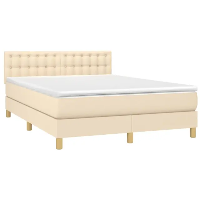 Uporabite to box spring posteljo z vzmetnico in LED osvetlitvijo in uživajte v mirnem spancu! To bo osrednja točka vaše spalnice. Trpežno blago: Blago zagotavlja preprost in čist videz, poleg tega pa je zračno in trpežno.Praktično vzglavje: Vzglavje postelje je nastavljivo po višini po vaših željah. To vzglavje za posteljo vam zagotavlja odlično oporo za hrbet, ko sedite na postelji in berete ali gledate filme.Barvit LED trak: Vnesite igrivost v temo z barvitimi LED lučkami!Ležišče z žepkastimi vzmetmi: Vgrajena individualna žepkasta vzmet je znana po zelo visoki kakovosti, hkrati pa zagotavlja visoko stopnjo vzdržljivosti in prilagodljivosti. Lahko učinkovito absorbira hrup in udarce, ki jih povzročata metanje in obračanje.Koži prijazen nadvložek: Zaščita za ležišče ima trpežno in koži prijazno tkanino, zaradi česar je mehka in udobna. Opomba:Zaradi higienskih razlogov vzmetnice ni mogoče vrniti po odstranitvi ali odprtju embalaže.Vsakemu izdelku je priložen priročnik za enostavno sestavljanje.Režete lahko samo del s simbolom škarij in samo del z USB bo deloval kot prej.Izdelek ima priključek USB, vendar certificiran 5V vir napajanja USB ni priložen.Postelja:Barva: KremMaterial: Blago (100 % poliester), vezan les, inženirski les, trden macesnov lesCelotne dimenzije: 203 x 144 x 78/88 cm (D x Š x V)Vzmetnica za posteljo:Barva: Bela in kremnaMaterial: Blago (100 % poliester)Material polnila: Žepkaste vzmeti, penaDimenzije: 140 x 200 x 20 cm (Š x D x V)Nadvložek:Barva: BelaMaterial nadvložka: Blago (100 % poliester)Material polnila: PenaDimenzije: 140 x 200 x 5 cm (Š x D x V)LED trak:Dolžina (vsak): 55 cmNapetost: DC 5 VDolžina kabla USB : 150 cmDolžina električnega kabla: 30 cmIP ocena: IP65S simbolom za rezanje s škarjamiPaket vsebuje:1 x Posteljni okvir1 x Vzglavje1 x Vzmetnica1 x Nadvložek2 x LED trak 3134042