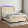 Uporabite to box spring posteljo z vzmetnico in LED osvetlitvijo in uživajte v mirnem spancu! To bo osrednja točka vaše spalnice. Trpežno blago: Blago zagotavlja preprost in čist videz, poleg tega pa je zračno in trpežno.Praktično vzglavje: Vzglavje postelje je nastavljivo po višini po vaših željah. To vzglavje za posteljo vam zagotavlja odlično oporo za hrbet, ko sedite na postelji in berete ali gledate filme.Barvit LED trak: Vnesite igrivost v temo z barvitimi LED lučkami!Ležišče z žepkastimi vzmetmi: Vgrajena individualna žepkasta vzmet je znana po zelo visoki kakovosti, hkrati pa zagotavlja visoko stopnjo vzdržljivosti in prilagodljivosti. Lahko učinkovito absorbira hrup in udarce, ki jih povzročata metanje in obračanje.Koži prijazen nadvložek: Zaščita za ležišče ima trpežno in koži prijazno tkanino, zaradi česar je mehka in udobna. Opomba:Zaradi higienskih razlogov vzmetnice ni mogoče vrniti po odstranitvi ali odprtju embalaže.Režete lahko samo del s simbolom škarij in samo del z USB bo deloval kot prej.Vsakemu izdelku je priložen priročnik za enostavno sestavljanje.Izdelek ima priključek USB, vendar certificiran 5V vir napajanja USB ni priložen.Postelja:Barva: KremMaterial: Blago (100 % poliester), vezan les, inženirski les, trden macesnov lesCelotne dimenzije: 203 x 147 x 118/128 cm (D x Š x V)Vzmetnica za posteljo:Barva: Bela in kremnaMaterial: Blago (100 % poliester)Material polnila: Žepkaste vzmeti, penaDimenzije: 140 x 200 x 20 cm (Š x D x V)Nadvložek:Barva: BelaMaterial nadvložka: Blago (100 % poliester)Material polnila: PenaDimenzije: 140 x 200 x 5 cm (Š x D x V)LED trak:Dolžina (vsak): 55 cmNapetost: DC 5 VDolžina kabla USB : 150 cmDolžina električnega kabla: 30 cmIP ocena: IP65S simbolom za rezanje s škarjamiPaket vsebuje:1 x Posteljni okvir1 x Vzglavje z ušesi1 x Vzmetnica1 x Nadvložek2 x LED trak 3138402