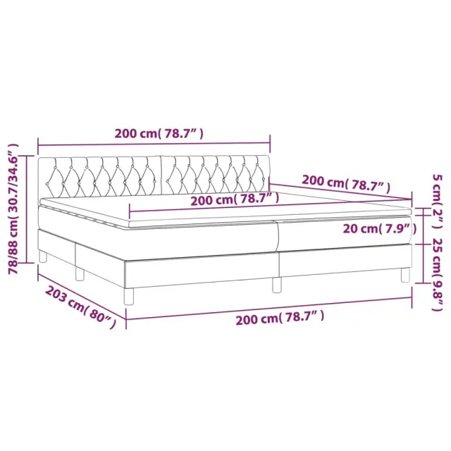 Uporabite to box spring posteljo z vzmetnico in LED osvetlitvijo in uživajte v mirnem spancu! To bo osrednja točka vaše spalnice. Trpežno blago: Blago zagotavlja preprost in čist videz, poleg tega pa je zračno in trpežno.Praktično vzglavje: Vzglavje postelje je nastavljivo po višini po vaših željah. To vzglavje za posteljo vam zagotavlja odlično oporo za hrbet, ko sedite na postelji in berete ali gledate filme.Barvit LED trak: Vnesite igrivost v temo z barvitimi LED lučkami!Ležišče z žepkastimi vzmetmi: Vgrajena individualna žepkasta vzmet je znana po zelo visoki kakovosti, hkrati pa zagotavlja visoko stopnjo vzdržljivosti in prilagodljivosti. Lahko učinkovito absorbira hrup in udarce, ki jih povzročata metanje in obračanje.Koži prijazen nadvložek: Zaščita za ležišče ima trpežno in koži prijazno tkanino, zaradi česar je mehka in udobna. Opomba:Zaradi higienskih razlogov vzmetnice ni mogoče vrniti po odstranitvi ali odprtju embalaže.Vsakemu izdelku je priložen priročnik za enostavno sestavljanje.Režete lahko samo del s simbolom škarij in samo del z USB bo deloval kot prej.Izdelek ima priključek USB, vendar certificiran 5V vir napajanja USB ni priložen.Postelja:Barva: ModraMaterial: Blago (100 % poliester), vezan les, inženirski les, trden macesnov lesCelotne dimenzije: 203 x 200 x 78/88 cm (D x Š x V)Vzmetnica za posteljo:Barva: Bela in modraMaterial: Blago (100 % poliester)Material polnila: Žepkaste vzmeti, penaDimenzije (vsaka): 100 x 200 x 20 cm (Š x D x V)Nadvložek:Barva: BelaMaterial nadvložka: Blago (100 % poliester)Material polnila: PenaDimenzije: 200 x 200 x 5 cm (Š x D x V)LED trak:Dolžina (vsak): 55 cmNapetost: DC 5 VDolžina kabla USB : 150 cmDolžina električnega kabla: 30 cmIP ocena: IP65S simbolom za rezanje s škarjamiPaket vsebuje:1 x Posteljni okvir1 x Vzglavje2 x Vzmetnica1 x Nadvložek2 x LED trak 3133427