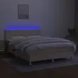 Uporabite to box spring posteljo z vzmetnico in LED osvetlitvijo in uživajte v mirnem spancu! To bo osrednja točka vaše spalnice. Trpežno blago: Blago zagotavlja preprost in čist videz, poleg tega pa je zračno in trpežno.Praktično vzglavje: Vzglavje postelje je nastavljivo po višini po vaših željah. To vzglavje za posteljo vam zagotavlja odlično oporo za hrbet, ko sedite na postelji in berete ali gledate filme.Barvit LED trak: Vnesite igrivost v temo z barvitimi LED lučkami!Ležišče z žepkastimi vzmetmi: Vgrajena individualna žepkasta vzmet je znana po zelo visoki kakovosti, hkrati pa zagotavlja visoko stopnjo vzdržljivosti in prilagodljivosti. Lahko učinkovito absorbira hrup in udarce, ki jih povzročata metanje in obračanje.Koži prijazen nadvložek: Zaščita za ležišče ima trpežno in koži prijazno tkanino, zaradi česar je mehka in udobna. Opomba:Zaradi higienskih razlogov vzmetnice ni mogoče vrniti po odstranitvi ali odprtju embalaže.Vsakemu izdelku je priložen priročnik za enostavno sestavljanje.Režete lahko samo del s simbolom škarij in samo del z USB bo deloval kot prej.Izdelek ima priključek USB, vendar certificiran 5V vir napajanja USB ni priložen.Postelja:Barva: KremMaterial: Blago (100 % poliester), vezan les, inženirski les, trden macesnov lesCelotne dimenzije: 203 x 144 x 78/88 cm (D x Š x V)Vzmetnica za posteljo:Barva: Bela in kremnaMaterial: Blago (100 % poliester)Material polnila: Žepkaste vzmeti, penaDimenzije: 140 x 200 x 20 cm (Š x D x V)Nadvložek:Barva: BelaMaterial nadvložka: Blago (100 % poliester)Material polnila: PenaDimenzije: 140 x 200 x 5 cm (Š x D x V)LED trak:Dolžina (vsak): 55 cmNapetost: DC 5 VDolžina kabla USB : 150 cmDolžina električnega kabla: 30 cmIP ocena: IP65S simbolom za rezanje s škarjamiPaket vsebuje:1 x Posteljni okvir1 x Vzglavje1 x Vzmetnica1 x Nadvložek2 x LED trak 3133562