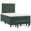Uporabite to box spring posteljo za uživanje v mirnem spancu! Ponuja maksimalno sprostitev in prijeten spanec. Mehak žamet: Žamet je mehka in razkošna tkanina, ki jo prepoznamo po gostem kupu enakomerno rezanih gladkih vlaken. Žametna tkanina ima značilen mehak občutek, zaradi česar je prijetna na dotik.Praktično vzglavje: Vzglavje postelje je nastavljivo po višini po vaših željah. To vzglavje za posteljo vam zagotavlja odlično oporo za hrbet, ko sedite na postelji in berete ali gledate filme.Ležišče z žepkastimi vzmetmi: Vgrajena individualna žepkasta vzmet je znana po zelo visoki kakovosti, hkrati pa zagotavlja visoko stopnjo vzdržljivosti in prilagodljivosti. Lahko učinkovito absorbira hrup in udarce, ki jih povzročata metanje in obračanje.Srednje trda opora: Posteljna vzmetnica odlično zagotavlja dodatno stabilnost in ravno pravšnjo stopnjo čvrstosti, ne da bi pri tem žrtvovala udobje. Zato je idealna za tiste, ki spijo na hrbtu ali trebuhu.Koži prijazen nadvložek: Zaščita za ležišče ima trpežno in koži prijazno tkanino, zaradi česar je mehka in udobna.Večnamenska klop: Ta klop lahko služi kot dodaten sedež v vašem domu. Lahko se uporablja tudi kot zaključek posteljne klopi. Opomba:Zaradi higienskih razlogov vzmetnice ni mogoče vrniti po odstranitvi ali odprtju embalaže.Vsakemu izdelku je priložen priročnik za enostavno sestavljanje.Postelja:Barva: Temno zelenaMaterial: Žamet (100 % poliester), vezan les, konstruiran lesDimenzije: 203 x 120 x 118/128 cm (D x Š x V)Vzmetnica za posteljo:Barva: Temno zelena in belaMaterial: Žamet (100 % poliester)Material polnila: Žepkaste vzmeti, penaDimenzije: 120 x 200 x 20 cm (Š x D x V)Nadvložek:Barva: BelaMaterial: Blago (100 % poliester)Material polnila: PenaDimenzije: 120 x 200 x 5 cm (D x Š x V)Klop:Barva: Temno zelenaMaterial: Žamet (100 % poliester), vezan les, konstruiran lesDimenzije: 70 x 30 x 30 cm (Š x G x V)Paket vsebuje:1 x Posteljni okvir1 x Vzglavje1 x Vzmetnica1 x Nadvložek1 x Klop 3138016