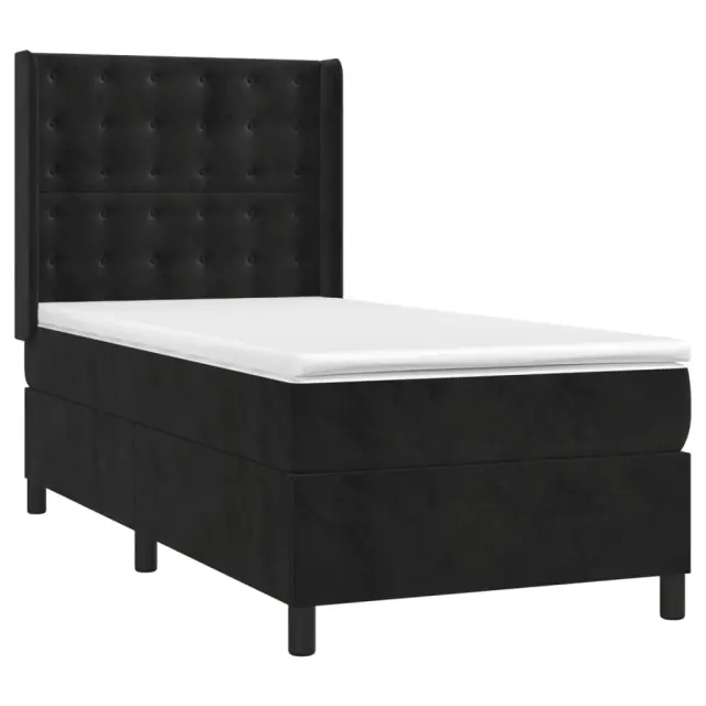 Uporabite to box spring posteljo z vzmetnico in LED osvetlitvijo in uživajte v mirnem spancu! To bo osrednja točka vaše spalnice. Mehak žamet: Žamet je mehka in razkošna tkanina, ki jo prepoznamo po gostem kupu enakomerno rezanih gladkih vlaken. Žametna tkanina ima značilen mehak občutek, zaradi česar je prijetna na dotik.Praktično vzglavje: Vzglavje postelje je nastavljivo po višini po vaših željah. To vzglavje za posteljo vam zagotavlja odlično oporo za hrbet, ko sedite na postelji in berete ali gledate filme.Barvit LED trak: Vnesite igrivost v temo z barvitimi LED lučkami!Ležišče z žepkastimi vzmetmi: Vgrajena individualna žepkasta vzmet je znana po zelo visoki kakovosti, hkrati pa zagotavlja visoko stopnjo vzdržljivosti in prilagodljivosti. Lahko učinkovito absorbira hrup in udarce, ki jih povzročata metanje in obračanje.Koži prijazen nadvložek: Zaščita za ležišče ima trpežno in koži prijazno tkanino, zaradi česar je mehka in udobna. Opomba:Zaradi higienskih razlogov vzmetnice ni mogoče vrniti po odstranitvi ali odprtju embalaže.Režete lahko samo del s simbolom škarij in samo del z USB bo deloval kot prej.Vsakemu izdelku je priložen priročnik za enostavno sestavljanje.Izdelek ima priključek USB, vendar certificiran 5V vir napajanja USB ni priložen.Postelja:Barva: ČrnaMaterial: Žamet (100 % poliester), vezan les, inženirski les, trden macesnov lesCelotne dimenzije: 193 x 93 x 118/128 cm (D x Š x V)Vzmetnica za posteljo:Barva: Bela in črnaMaterial: Žamet (100 % poliester)Material polnila: Žepkaste vzmeti, penaDimenzije: 90 x 190 x 20 cm (Š x D x V)Nadvložek:Barva: BelaMaterial nadvložka: Blago (100 % poliester)Material polnila: PenaDimenzije: 90 x 190 x 5 cm (Š x D x V)LED trak:Dolžina: 55 cmNapetost: DC 5 VDolžina kabla USB : 150 cmDolžina električnega kabla: 30 cmIP ocena: IP65S simbolom za rezanje s škarjamiPaket vsebuje:1 x Posteljni okvir1 x Vzglavje z ušesi1 x Vzmetnica1 x Nadvložek1 x LED trak 3139777