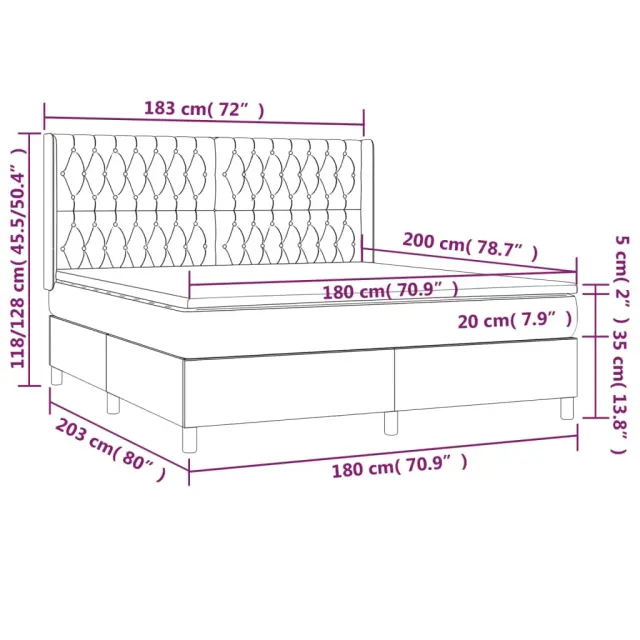Uporabite to box spring posteljo za uživanje v mirnem spancu! Ponuja maksimalno sprostitev in prijeten spanec. Trpežno blago: Blago zagotavlja preprost in čist videz, poleg tega pa je zračno in trpežno.Praktično vzglavje: Vzglavje postelje je nastavljivo po višini po vaših željah. To vzglavje za posteljo vam zagotavlja odlično oporo za hrbet, ko sedite na postelji in berete ali gledate filme.Ležišče z žepkastimi vzmetmi: Vgrajena individualna žepkasta vzmet je znana po zelo visoki kakovosti, hkrati pa zagotavlja visoko stopnjo vzdržljivosti in prilagodljivosti. Lahko učinkovito absorbira hrup in udarce, ki jih povzročata metanje in obračanje.Srednje trda opora: Posteljna vzmetnica odlično zagotavlja dodatno stabilnost in ravno pravšnjo stopnjo čvrstosti, ne da bi pri tem žrtvovala udobje. Zato je idealna za tiste, ki spijo na hrbtu ali trebuhu.Koži prijazen nadvložek: Zaščita za ležišče ima trpežno in koži prijazno tkanino, zaradi česar je mehka in udobna. Opomba:Zaradi higienskih razlogov vzmetnice ni mogoče vrniti po odstranitvi ali odprtju embalaže.Vsakemu izdelku je priložen priročnik za enostavno sestavljanje.Postelja:Barva: Temno rjavaMaterial: Blago (100 % poliester), trden macesnov les, vezan les, inženirski lesDimenzije: 203 x 183 x 118/128 cm (D x Š x V)Vzmetnica za posteljo:Barva: Bela in temno rjavaMaterial: Blago (100 % poliester)Material polnila: Žepkaste vzmeti, penaDimenzije: 180 x 200 x 20 cm (Š x D x V)Nadvložek:Barva: BelaMaterial nadvložka: Blago (100 % poliester)Material polnila: PenaDimenzije: 180 x 200 x 5 cm (Š x D x V)Paket vsebuje:1 x Posteljni okvir1 x Vzglavje z ušesi1 x Vzmetnica1 x Nadvložek 3132252