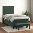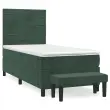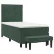 Uporabite to box spring posteljo za uživanje v mirnem spancu! Ponuja maksimalno sprostitev in prijeten spanec. Mehak žamet: Žamet je mehka in razkošna tkanina, ki jo prepoznamo po gostem kupu enakomerno rezanih gladkih vlaken. Žametna tkanina ima značilen mehak občutek, zaradi česar je prijetna na dotik.Praktično vzglavje: Vzglavje postelje je nastavljivo po višini po vaših željah. To vzglavje za posteljo vam zagotavlja odlično oporo za hrbet, ko sedite na postelji in berete ali gledate filme.Ležišče z žepkastimi vzmetmi: Vgrajena individualna žepkasta vzmet je znana po zelo visoki kakovosti, hkrati pa zagotavlja visoko stopnjo vzdržljivosti in prilagodljivosti. Lahko učinkovito absorbira hrup in udarce, ki jih povzročata metanje in obračanje.Srednje trda opora: Posteljna vzmetnica odlično zagotavlja dodatno stabilnost in ravno pravšnjo stopnjo čvrstosti, ne da bi pri tem žrtvovala udobje. Zato je idealna za tiste, ki spijo na hrbtu ali trebuhu.Koži prijazen nadvložek: Zaščita za ležišče ima trpežno in koži prijazno tkanino, zaradi česar je mehka in udobna.Večnamenska klop: Ta klop lahko služi kot dodaten sedež v vašem domu. Lahko se uporablja tudi kot zaključek posteljne klopi. Opomba:Zaradi higienskih razlogov vzmetnice ni mogoče vrniti po odstranitvi ali odprtju embalaže.Vsakemu izdelku je priložen priročnik za enostavno sestavljanje.Postelja:Barva: Temno zelenaMaterial: Žamet (100 % poliester), vezan les, konstruiran lesCelotne dimenzije: 193 x 90 x 118/128 cm (D x Š x V)Vzmetnica za posteljo:Barva: Temno zelena in belaMaterial: Žamet (100 % poliester)Material polnila: Žepkaste vzmeti, penaDimenzije: 90 x 190 x 20 cm (Š x D x V)Nadvložek:Barva: BelaMaterial: Blago (100 % poliester)Material polnila: PenaDimenzije: 90 x 190 x 5 cm (Š x D x V)Klop:Barva: Temno zelenaMaterial: Žamet (100 % poliester), vezan les, konstruiran lesDimenzije: 70 x 30 x 30 cm (Š x G x V)Paket vsebuje:1 x Posteljni okvir1 x Vzglavje1 x Vzmetnica1 x Nadvložek1 x Klop 3137878