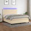 Uporabite to box spring posteljo z vzmetnico in LED osvetlitvijo in uživajte v mirnem spancu! To bo osrednja točka vaše spalnice. Trpežno blago: Blago zagotavlja preprost in čist videz, poleg tega pa je zračno in trpežno.Praktično vzglavje: Vzglavje postelje je nastavljivo po višini po vaših željah. To vzglavje za posteljo vam zagotavlja odlično oporo za hrbet, ko sedite na postelji in berete ali gledate filme.Barvit LED trak: Vnesite igrivost v temo z barvitimi LED lučkami!Ležišče z žepkastimi vzmetmi: Vgrajena individualna žepkasta vzmet je znana po zelo visoki kakovosti, hkrati pa zagotavlja visoko stopnjo vzdržljivosti in prilagodljivosti. Lahko učinkovito absorbira hrup in udarce, ki jih povzročata metanje in obračanje.Koži prijazen nadvložek: Zaščita za ležišče ima trpežno in koži prijazno tkanino, zaradi česar je mehka in udobna. Opomba:Zaradi higienskih razlogov vzmetnice ni mogoče vrniti po odstranitvi ali odprtju embalaže.Režete lahko samo del s simbolom škarij in samo del z USB bo deloval kot prej.Vsakemu izdelku je priložen priročnik za enostavno sestavljanje.Izdelek ima priključek USB, vendar certificiran 5V vir napajanja USB ni priložen.Postelja:Barva: KremMaterial: Blago (100 % poliester), vezan les, inženirski les, trden macesnov lesCelotne dimenzije: 203 x 180 x 118/128 cm (D x Š x V)Vzmetnica za posteljo:Barva: Bela in kremnaMaterial: Blago (100 % poliester)Material polnila: Žepkaste vzmeti, penaDimenzije: 180 x 200 x 20 cm (Š x D x V)Nadvložek:Barva: BelaMaterial nadvložka: Blago (100 % poliester)Material polnila: PenaDimenzije: 180 x 200 x 5 cm (Š x D x V)LED trak:Dolžina (vsak): 55 cmNapetost: DC 5 VDolžina kabla USB : 150 cmDolžina električnega kabla: 30 cmIP ocena: IP65S simbolom za rezanje s škarjamiPaket vsebuje:1 x Posteljni okvir1 x Vzglavje1 x Vzmetnica1 x Nadvložek2 x LED trak 3135058