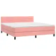 Uporabite to box spring posteljo z vzmetnico in LED osvetlitvijo in uživajte v mirnem spancu! To bo osrednja točka vaše spalnice. Mehak žamet: Žamet je mehka in razkošna tkanina, ki jo prepoznamo po gostem kupu enakomerno rezanih gladkih vlaken. Žametna tkanina ima značilen mehak občutek, zaradi česar je prijetna na dotik.Praktično vzglavje: Vzglavje postelje je nastavljivo po višini po vaših željah. To vzglavje za posteljo vam zagotavlja odlično oporo za hrbet, ko sedite na postelji in berete ali gledate filme.Barvit LED trak: Vnesite igrivost v temo z barvitimi LED lučkami!Ležišče z žepkastimi vzmetmi: Vgrajena individualna žepkasta vzmet je znana po zelo visoki kakovosti, hkrati pa zagotavlja visoko stopnjo vzdržljivosti in prilagodljivosti. Lahko učinkovito absorbira hrup in udarce, ki jih povzročata metanje in obračanje.Koži prijazen nadvložek: Zaščita za ležišče ima trpežno in koži prijazno tkanino, zaradi česar je mehka in udobna. Opomba:Zaradi higienskih razlogov vzmetnice ni mogoče vrniti po odstranitvi ali odprtju embalaže.Vsakemu izdelku je priložen priročnik za enostavno sestavljanje.Režete lahko samo del s simbolom škarij in samo del z USB bo deloval kot prej.Izdelek ima priključek USB, vendar certificiran 5V vir napajanja USB ni priložen.Postelja:Barva: RozaMaterial: Žamet (100 % poliester), vezan les, inženirski les, trden macesnov lesCelotne dimenzije: 203 x 160 x 78/88 cm (D x Š x V)Vzmetnica za posteljo:Barva: Roza in belaMaterial: Žamet (100 % poliester)Material polnila: Žepkaste vzmeti, penaDimenzije: 160 x 200 x 20 cm (Š x D x V)Nadvložek:Barva: BelaMaterial nadvložka: Blago (100 % poliester)Material polnila: PenaDimenzije: 160 x 200 x 5 cm (Š x D x V)LED trak:Dolžina (vsak): 55 cmNapetost: DC 5 VDolžina kabla USB : 150 cmDolžina električnega kabla: 30 cmIP ocena: IP65S simbolom za rezanje s škarjamiPaket vsebuje:1 x Posteljni okvir1 x Vzglavje1 x Vzmetnica1 x Nadvložek2 x LED trak 3134476