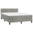 Uporabite to box spring posteljo z vzmetnico in LED osvetlitvijo in uživajte v mirnem spancu! To bo osrednja točka vaše spalnice. Mehak žamet: Žamet je mehka in razkošna tkanina, ki jo prepoznamo po gostem kupu enakomerno rezanih gladkih vlaken. Žametna tkanina ima značilen mehak občutek, zaradi česar je prijetna na dotik.Praktično vzglavje: Vzglavje postelje je nastavljivo po višini po vaših željah. To vzglavje za posteljo vam zagotavlja odlično oporo za hrbet, ko sedite na postelji in berete ali gledate filme.Barvit LED trak: Vnesite igrivost v temo z barvitimi LED lučkami!Ležišče z žepkastimi vzmetmi: Vgrajena individualna žepkasta vzmet je znana po zelo visoki kakovosti, hkrati pa zagotavlja visoko stopnjo vzdržljivosti in prilagodljivosti. Lahko učinkovito absorbira hrup in udarce, ki jih povzročata metanje in obračanje.Koži prijazen nadvložek: Zaščita za ležišče ima trpežno in koži prijazno tkanino, zaradi česar je mehka in udobna. Opomba:Zaradi higienskih razlogov vzmetnice ni mogoče vrniti po odstranitvi ali odprtju embalaže.Vsakemu izdelku je priložen priročnik za enostavno sestavljanje.Režete lahko samo del s simbolom škarij in samo del z USB bo deloval kot prej.Izdelek ima priključek USB, vendar certificiran 5V vir napajanja USB ni priložen.Postelja:Barva: Svetlo sivaMaterial: Žamet (100 % poliester), vezan les, inženirski les, trden macesnov lesCelotne dimenzije: 203 x 144 x 78/88 cm (D x Š x V)Vzmetnica za posteljo:Barva: Bela in svetlo sivaMaterial: Žamet (100 % poliester)Material polnila: Žepkaste vzmeti, penaDimenzije: 140 x 200 x 20 cm (Š x D x V)Nadvložek:Barva: BelaMaterial nadvložka: Blago (100 % poliester)Material polnila: PenaDimenzije: 140 x 200 x 5 cm (Š x D x V)LED trak:Dolžina (vsak): 55 cmNapetost: DC 5 VDolžina kabla USB : 150 cmDolžina električnega kabla: 30 cmIP ocena: IP65S simbolom za rezanje s škarjamiPaket vsebuje:1 x Posteljni okvir1 x Vzglavje1 x Vzmetnica1 x Nadvložek2 x LED trak 3134525