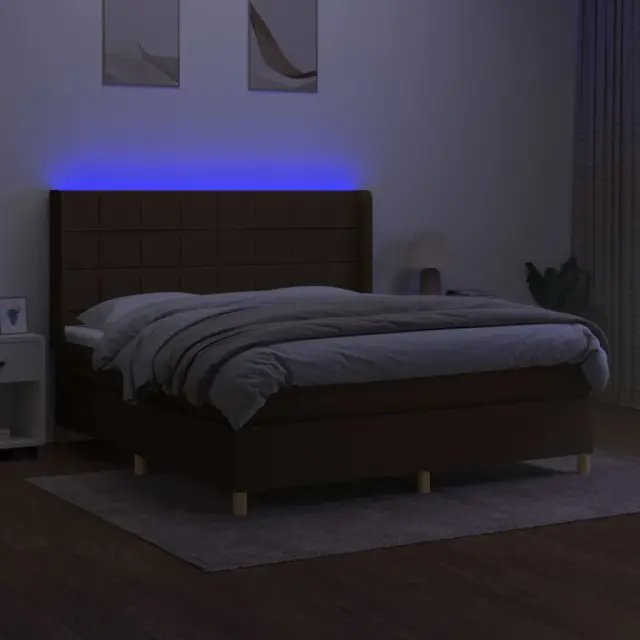 Uporabite to box spring posteljo z vzmetnico in LED osvetlitvijo in uživajte v mirnem spancu! To bo osrednja točka vaše spalnice. Trpežno blago: Blago zagotavlja preprost in čist videz, poleg tega pa je zračno in trpežno.Praktično vzglavje: Vzglavje postelje je nastavljivo po višini po vaših željah. To vzglavje za posteljo vam zagotavlja odlično oporo za hrbet, ko sedite na postelji in berete ali gledate filme.Barvit LED trak: Vnesite igrivost v temo z barvitimi LED lučkami!Ležišče z žepkastimi vzmetmi: Vgrajena individualna žepkasta vzmet je znana po zelo visoki kakovosti, hkrati pa zagotavlja visoko stopnjo vzdržljivosti in prilagodljivosti. Lahko učinkovito absorbira hrup in udarce, ki jih povzročata metanje in obračanje.Koži prijazen nadvložek: Zaščita za ležišče ima trpežno in koži prijazno tkanino, zaradi česar je mehka in udobna. Opomba:Zaradi higienskih razlogov vzmetnice ni mogoče vrniti po odstranitvi ali odprtju embalaže.Režete lahko samo del s simbolom škarij in samo del z USB bo deloval kot prej.Vsakemu izdelku je priložen priročnik za enostavno sestavljanje.Izdelek ima priključek USB, vendar certificiran 5V vir napajanja USB ni priložen.Postelja:Barva: Temno rjavaMaterial: Blago (100 % poliester), vezan les, inženirski les, trden macesnov lesCelotne dimenzije: 203 x 163 x 118/128 cm (D x Š x V)Vzmetnica za posteljo:Barva: Bela in temno rjavaMaterial: Blago (100 % poliester)Material polnila: Žepkaste vzmeti, penaDimenzije: 160 x 200 x 20 cm (Š x D x V)Nadvložek:Barva: BelaMaterial nadvložka: Blago (100 % poliester)Material polnila: PenaDimenzije: 160 x 200 x 5 cm (Š x D x V)LED trak:Dolžina (vsak): 55 cmNapetost: DC 5 VDolžina kabla USB : 150 cmDolžina električnega kabla: 30 cmIP ocena: IP65S simbolom za rezanje s škarjamiPaket vsebuje:1 x Posteljni okvir1 x Vzglavje z ušesi1 x Vzmetnica1 x Nadvložek2 x LED trak 3138888