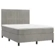 Uporabite to box spring posteljo z vzmetnico in LED osvetlitvijo in uživajte v mirnem spancu! To bo osrednja točka vaše spalnice. Mehak žamet: Žamet je mehka in razkošna tkanina, ki jo prepoznamo po gostem kupu enakomerno rezanih gladkih vlaken. Žametna tkanina ima značilen mehak občutek, zaradi česar je prijetna na dotik.Praktično vzglavje: Vzglavje postelje je nastavljivo po višini po vaših željah. To vzglavje za posteljo vam zagotavlja odlično oporo za hrbet, ko sedite na postelji in berete ali gledate filme.Barvit LED trak: Vnesite igrivost v temo z barvitimi LED lučkami!Ležišče z žepkastimi vzmetmi: Vgrajena individualna žepkasta vzmet je znana po zelo visoki kakovosti, hkrati pa zagotavlja visoko stopnjo vzdržljivosti in prilagodljivosti. Lahko učinkovito absorbira hrup in udarce, ki jih povzročata metanje in obračanje.Koži prijazen nadvložek: Zaščita za ležišče ima trpežno in koži prijazno tkanino, zaradi česar je mehka in udobna. Opomba:Zaradi higienskih razlogov vzmetnice ni mogoče vrniti po odstranitvi ali odprtju embalaže.Režete lahko samo del s simbolom škarij in samo del z USB bo deloval kot prej.Vsakemu izdelku je priložen priročnik za enostavno sestavljanje.Izdelek ima priključek USB, vendar certificiran 5V vir napajanja USB ni priložen.Postelja:Barva: Svetlo sivaMaterial: Žamet (100 % poliester), vezan les, inženirski les, trden macesnov lesCelotne dimenzije: 203 x 144 x 118/128 cm (D x Š x V)Vzmetnica za posteljo:Barva: Bela in svetlo sivaMaterial: Žamet (100 % poliester)Material polnila: Žepkaste vzmeti, penaDimenzije: 140 x 200 x 20 cm (Š x D x V)Nadvložek:Barva: BelaMaterial nadvložka: Blago (100 % poliester)Material polnila: PenaDimenzije: 140 x 200 x 5 cm (Š x D x V)LED trak:Dolžina (vsak): 55 cmNapetost: DC 5 VDolžina kabla USB : 150 cmDolžina električnega kabla: 30 cmIP ocena: IP65S simbolom za rezanje s škarjamiPaket vsebuje:1 x Posteljni okvir1 x Vzglavje1 x Vzmetnica1 x Nadvložek2 x LED trak 3136245