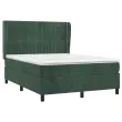 Uporabite to box spring posteljo za uživanje v mirnem spancu! Ponuja maksimalno sprostitev in prijeten spanec. Mehak žamet: Žamet je mehka in razkošna tkanina, ki jo prepoznamo po gostem kupu enakomerno rezanih gladkih vlaken. Žametna tkanina ima značilen mehak občutek, zaradi česar je prijetna na dotik.Praktično vzglavje: Vzglavje postelje je nastavljivo po višini po vaših željah. To vzglavje za posteljo vam zagotavlja odlično oporo za hrbet, ko sedite na postelji in berete ali gledate filme.Ležišče z žepkastimi vzmetmi: Vgrajena individualna žepkasta vzmet je znana po zelo visoki kakovosti, hkrati pa zagotavlja visoko stopnjo vzdržljivosti in prilagodljivosti. Lahko učinkovito absorbira hrup in udarce, ki jih povzročata metanje in obračanje.Srednje trda opora: Posteljna vzmetnica odlično zagotavlja dodatno stabilnost in ravno pravšnjo stopnjo čvrstosti, ne da bi pri tem žrtvovala udobje. Zato je idealna za tiste, ki spijo na hrbtu ali trebuhu.Koži prijazen nadvložek: Zaščita za ležišče ima trpežno in koži prijazno tkanino, zaradi česar je mehka in udobna. Opomba:Zaradi higienskih razlogov vzmetnice ni mogoče vrniti po odstranitvi ali odprtju embalaže.Vsakemu izdelku je priložen priročnik za enostavno sestavljanje.Postelja:Barva: Temno zelenaMaterial: Žamet (100 % poliester), trden macesnov les, vezan les, inženirski lesDimenzije: 203 x 147 x 118/128 cm (D x Š x V)Vzmetnica za posteljo:Barva: Bela in temno zelenaMaterial: Žamet (100 % poliester)Material polnila: Žepkaste vzmeti, penaDimenzije: 140 x 200 x 20 cm (Š x D x V)Nadvložek:Barva: BelaMaterial nadvložka: Blago (100 % poliester)Material polnila: PenaDimenzije: 140 x 200 x 5 cm (Š x D x V)Paket vsebuje:1 x Posteljni okvir1 x Vzglavje z ušesi1 x Vzmetnica1 x Nadvložek 3129336