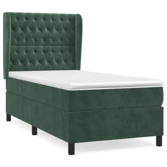 Uporabite to box spring posteljo za uživanje v mirnem spancu! Ponuja maksimalno sprostitev in prijeten spanec. Mehak žamet: Žamet je mehka in razkošna tkanina, ki jo prepoznamo po gostem kupu enakomerno rezanih gladkih vlaken. Žametna tkanina ima značilen mehak občutek, zaradi česar je prijetna na dotik.Praktično vzglavje: Vzglavje postelje je nastavljivo po višini po vaših željah. To vzglavje za posteljo vam zagotavlja odlično oporo za hrbet, ko sedite na postelji in berete ali gledate filme.Ležišče z žepkastimi vzmetmi: Vgrajena individualna žepkasta vzmet je znana po zelo visoki kakovosti, hkrati pa zagotavlja visoko stopnjo vzdržljivosti in prilagodljivosti. Lahko učinkovito absorbira hrup in udarce, ki jih povzročata metanje in obračanje.Srednje trda opora: Posteljna vzmetnica odlično zagotavlja dodatno stabilnost in ravno pravšnjo stopnjo čvrstosti, ne da bi pri tem žrtvovala udobje. Zato je idealna za tiste, ki spijo na hrbtu ali trebuhu.Koži prijazen nadvložek: Zaščita za ležišče ima trpežno in koži prijazno tkanino, zaradi česar je mehka in udobna. Opomba:Zaradi higienskih razlogov vzmetnice ni mogoče vrniti po odstranitvi ali odprtju embalaže.Vsakemu izdelku je priložen priročnik za enostavno sestavljanje.Postelja:Barva: Temno zelenaMaterial: Žamet (100 % poliester), trden macesnov les, vezan les, inženirski lesDimenzije: 203 x 83 x 118/128 cm (D x Š x V)Vzmetnica za posteljo:Barva: Bela in temno zelenaMaterial: Žamet (100 % poliester)Material polnila: Žepkaste vzmeti, penaDimenzije: 80 x 200 x 20 cm (Š x D x V)Nadvložek:Barva: BelaMaterial nadvložka: Blago (100 % poliester)Material polnila: PenaDimenzije: 80 x 200 x 5 cm (Š x D x V)Paket vsebuje:1 x Posteljni okvir1 x Vzglavje z ušesi1 x Vzmetnica1 x Nadvložek 3129360