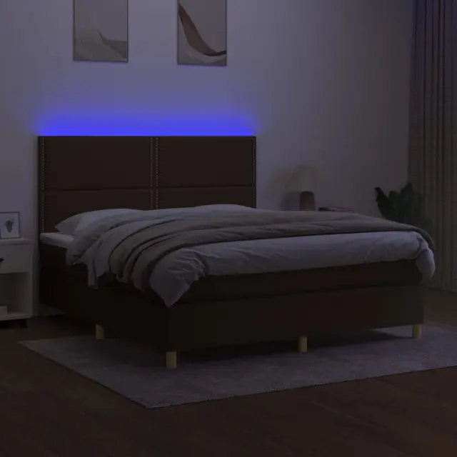 Uporabite to box spring posteljo z vzmetnico in LED osvetlitvijo in uživajte v mirnem spancu! To bo osrednja točka vaše spalnice. Trpežno blago: Blago zagotavlja preprost in čist videz, poleg tega pa je zračno in trpežno.Praktično vzglavje: Vzglavje postelje je nastavljivo po višini po vaših željah. To vzglavje za posteljo vam zagotavlja odlično oporo za hrbet, ko sedite na postelji in berete ali gledate filme.Barvit LED trak: Vnesite igrivost v temo z barvitimi LED lučkami!Ležišče z žepkastimi vzmetmi: Vgrajena individualna žepkasta vzmet je znana po zelo visoki kakovosti, hkrati pa zagotavlja visoko stopnjo vzdržljivosti in prilagodljivosti. Lahko učinkovito absorbira hrup in udarce, ki jih povzročata metanje in obračanje.Koži prijazen nadvložek: Zaščita za ležišče ima trpežno in koži prijazno tkanino, zaradi česar je mehka in udobna. Opomba:Zaradi higienskih razlogov vzmetnice ni mogoče vrniti po odstranitvi ali odprtju embalaže.Režete lahko samo del s simbolom škarij in samo del z USB bo deloval kot prej.Vsakemu izdelku je priložen priročnik za enostavno sestavljanje.Izdelek ima priključek USB, vendar certificiran 5V vir napajanja USB ni priložen.Postelja:Barva: Temno rjavaMaterial: Blago (100 % poliester), vezan les, inženirski les, trden macesnov lesCelotne dimenzije: 203 x 180 x 118/128 cm (D x Š x V)Vzmetnica za posteljo:Barva: Bela in temno rjavaMaterial: Blago (100 % poliester)Material polnila: Žepkaste vzmeti, penaDimenzije: 180 x 200 x 20 cm (Š x D x V)Nadvložek:Barva: BelaMaterial nadvložka: Blago (100 % poliester)Material polnila: PenaDimenzije: 180 x 200 x 5 cm (Š x D x V)LED trak:Dolžina (vsak): 55 cmNapetost: DC 5 VDolžina kabla USB : 150 cmDolžina električnega kabla: 30 cmIP ocena: IP65S simbolom za rezanje s škarjamiPaket vsebuje:1 x Posteljni okvir1 x Vzglavje1 x Vzmetnica1 x Nadvložek2 x LED trak 3135376