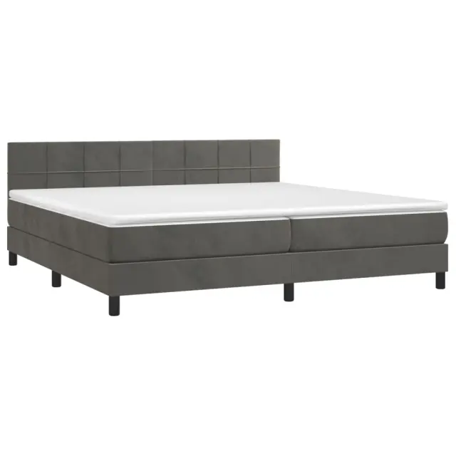 Uporabite to box spring posteljo z vzmetnico in LED osvetlitvijo in uživajte v mirnem spancu! To bo osrednja točka vaše spalnice. Mehak žamet: Žamet je mehka in razkošna tkanina, ki jo prepoznamo po gostem kupu enakomerno rezanih gladkih vlaken. Žametna tkanina ima značilen mehak občutek, zaradi česar je prijetna na dotik.Praktično vzglavje: Vzglavje postelje je nastavljivo po višini po vaših željah. To vzglavje za posteljo vam zagotavlja odlično oporo za hrbet, ko sedite na postelji in berete ali gledate filme.Barvit LED trak: Vnesite igrivost v temo z barvitimi LED lučkami!Ležišče z žepkastimi vzmetmi: Vgrajena individualna žepkasta vzmet je znana po zelo visoki kakovosti, hkrati pa zagotavlja visoko stopnjo vzdržljivosti in prilagodljivosti. Lahko učinkovito absorbira hrup in udarce, ki jih povzročata metanje in obračanje.Koži prijazen nadvložek: Zaščita za ležišče ima trpežno in koži prijazno tkanino, zaradi česar je mehka in udobna. Opomba:Zaradi higienskih razlogov vzmetnice ni mogoče vrniti po odstranitvi ali odprtju embalaže.Vsakemu izdelku je priložen priročnik za enostavno sestavljanje.Režete lahko samo del s simbolom škarij in samo del z USB bo deloval kot prej.Izdelek ima priključek USB, vendar certificiran 5V vir napajanja USB ni priložen.Postelja:Barva: Temno sivaMaterial: Žamet (100 % poliester), vezan les, inženirski les, trden macesnov lesCelotne dimenzije: 203 x 200 x 78/88 cm (D x Š x V)Vzmetnica za posteljo:Barva: Bela in temno sivaMaterial: Žamet (100 % poliester)Material polnila: Žepkaste vzmeti, penaDimenzije (vsaka): 100 x 200 x 20 cm (Š x D x V)Nadvložek:Barva: BelaMaterial nadvložka: Blago (100 % poliester)Material polnila: PenaDimenzije: 200 x 200 x 5 cm (Š x D x V)LED trak:Dolžina (vsak): 55 cmNapetost: DC 5 VDolžina kabla USB : 150 cmDolžina električnega kabla: 30 cmIP ocena: IP65S simbolom za rezanje s škarjamiPaket vsebuje:1 x Posteljni okvir1 x Vzglavje2 x Vzmetnica1 x Nadvložek2 x LED trak 3134424