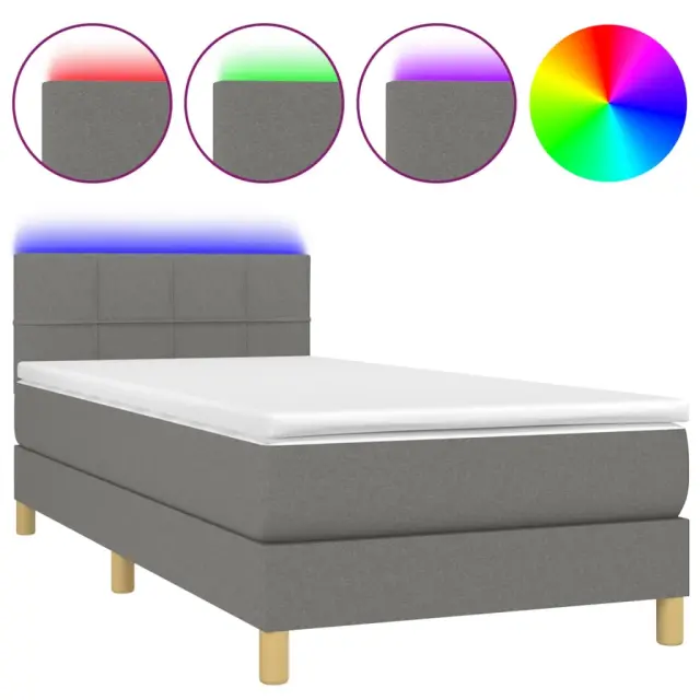Uporabite to box spring posteljo z vzmetnico in LED osvetlitvijo in uživajte v mirnem spancu! To bo osrednja točka vaše spalnice. Trpežno blago: Blago zagotavlja preprost in čist videz, poleg tega pa je zračno in trpežno.Praktično vzglavje: Vzglavje postelje je nastavljivo po višini po vaših željah. To vzglavje za posteljo vam zagotavlja odlično oporo za hrbet, ko sedite na postelji in berete ali gledate filme.Barvit LED trak: Vnesite igrivost v temo z barvitimi LED lučkami!Ležišče z žepkastimi vzmetmi: Vgrajena individualna žepkasta vzmet je znana po zelo visoki kakovosti, hkrati pa zagotavlja visoko stopnjo vzdržljivosti in prilagodljivosti. Lahko učinkovito absorbira hrup in udarce, ki jih povzročata metanje in obračanje.Koži prijazen nadvložek: Zaščita za ležišče ima trpežno in koži prijazno tkanino, zaradi česar je mehka in udobna. Opomba:Zaradi higienskih razlogov vzmetnice ni mogoče vrniti po odstranitvi ali odprtju embalaže.Vsakemu izdelku je priložen priročnik za enostavno sestavljanje.Režete lahko samo del s simbolom škarij in samo del z USB bo deloval kot prej.Izdelek ima priključek USB, vendar certificiran 5V vir napajanja USB ni priložen.Postelja:Barva: Temno sivaMaterial: Blago (100 % poliester), vezan les, inženirski les, trden macesnov lesCelotne dimenzije: 203 x 100 x 78/88 cm (D x Š x V)Vzmetnica za posteljo:Barva: Bela in temno sivaMaterial: Blago (100 % poliester)Material polnila: Žepkaste vzmeti, penaDimenzije: 100 x 200 x 20 cm (Š x D x V)Nadvložek:Barva: BelaMaterial nadvložka: Blago (100 % poliester)Material polnila: PenaDimenzije: 100 x 200 x 5 cm (Š x D x V)LED trak:Dolžina: 55 cmNapetost: DC 5 VDolžina kabla USB : 150 cmDolžina električnega kabla: 30 cmIP ocena: IP65S simbolom za rezanje s škarjamiPaket vsebuje:1 x Posteljni okvir1 x Vzglavje1 x Vzmetnica1 x Nadvložek1 x LED trak 3133694