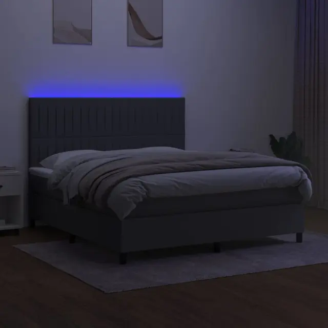 Uporabite to box spring posteljo z vzmetnico in LED osvetlitvijo in uživajte v mirnem spancu! To bo osrednja točka vaše spalnice. Trpežno blago: Blago zagotavlja preprost in čist videz, poleg tega pa je zračno in trpežno.Praktično vzglavje: Vzglavje postelje je nastavljivo po višini po vaših željah. To vzglavje za posteljo vam zagotavlja odlično oporo za hrbet, ko sedite na postelji in berete ali gledate filme.Barvit LED trak: Vnesite igrivost v temo z barvitimi LED lučkami!Ležišče z žepkastimi vzmetmi: Vgrajena individualna žepkasta vzmet je znana po zelo visoki kakovosti, hkrati pa zagotavlja visoko stopnjo vzdržljivosti in prilagodljivosti. Lahko učinkovito absorbira hrup in udarce, ki jih povzročata metanje in obračanje.Koži prijazen nadvložek: Zaščita za ležišče ima trpežno in koži prijazno tkanino, zaradi česar je mehka in udobna. Opomba:Zaradi higienskih razlogov vzmetnice ni mogoče vrniti po odstranitvi ali odprtju embalaže.Režete lahko samo del s simbolom škarij in samo del z USB bo deloval kot prej.Vsakemu izdelku je priložen priročnik za enostavno sestavljanje.Izdelek ima priključek USB, vendar certificiran 5V vir napajanja USB ni priložen.Postelja:Barva: Temno sivaMaterial: Blago (100 % poliester), vezan les, inženirski les, trden macesnov lesCelotne dimenzije: 203 x 160 x 118/128 cm (D x Š x V)Vzmetnica za posteljo:Barva: Bela in temno sivaMaterial: Blago (100 % poliester)Material polnila: Žepkaste vzmeti, penaDimenzije: 160 x 200 x 20 cm (Š x D x V)Nadvložek:Barva: BelaMaterial nadvložka: Blago (100 % poliester)Material polnila: PenaDimenzije: 160 x 200 x 5 cm (Š x D x V)LED trak:Dolžina (vsak): 55 cmNapetost: DC 5 VDolžina kabla USB : 150 cmDolžina električnega kabla: 30 cmIP ocena: IP65S simbolom za rezanje s škarjamiPaket vsebuje:1 x Posteljni okvir1 x Vzglavje1 x Vzmetnica1 x Nadvložek2 x LED trak 3135046