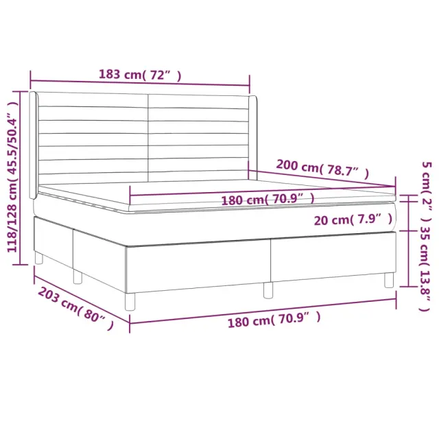 Uporabite to box spring posteljo z vzmetnico in LED osvetlitvijo in uživajte v mirnem spancu! To bo osrednja točka vaše spalnice. Trpežno blago: Blago zagotavlja preprost in čist videz, poleg tega pa je zračno in trpežno.Praktično vzglavje: Vzglavje postelje je nastavljivo po višini po vaših željah. To vzglavje za posteljo vam zagotavlja odlično oporo za hrbet, ko sedite na postelji in berete ali gledate filme.Barvit LED trak: Vnesite igrivost v temo z barvitimi LED lučkami!Ležišče z žepkastimi vzmetmi: Vgrajena individualna žepkasta vzmet je znana po zelo visoki kakovosti, hkrati pa zagotavlja visoko stopnjo vzdržljivosti in prilagodljivosti. Lahko učinkovito absorbira hrup in udarce, ki jih povzročata metanje in obračanje.Koži prijazen nadvložek: Zaščita za ležišče ima trpežno in koži prijazno tkanino, zaradi česar je mehka in udobna. Opomba:Zaradi higienskih razlogov vzmetnice ni mogoče vrniti po odstranitvi ali odprtju embalaže.Režete lahko samo del s simbolom škarij in samo del z USB bo deloval kot prej.Vsakemu izdelku je priložen priročnik za enostavno sestavljanje.Izdelek ima priključek USB, vendar certificiran 5V vir napajanja USB ni priložen.Postelja:Barva: Svetlo sivaMaterial: Blago (100 % poliester), vezan les, inženirski les, trden macesnov lesCelotne dimenzije: 203 x 183 x 118/128 cm (D x Š x V)Vzmetnica za posteljo:Barva: Bela in svetlo sivaMaterial: Blago (100 % poliester)Material polnila: Žepkaste vzmeti, penaDimenzije: 180 x 200 x 20 cm (Š x D x V)Nadvložek:Barva: BelaMaterial nadvložka: Blago (100 % poliester)Material polnila: PenaDimenzije: 180 x 200 x 5 cm (Š x D x V)LED trak:Dolžina (vsak): 55 cmNapetost: DC 5 VDolžina kabla USB : 150 cmDolžina električnega kabla: 30 cmIP ocena: IP65S simbolom za rezanje s škarjamiPaket vsebuje:1 x Posteljni okvir1 x Vzglavje z ušesi1 x Vzmetnica1 x Nadvložek2 x LED trak 3138413