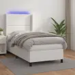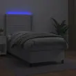 Uporabite to box spring posteljo z vzmetnico in LED osvetlitvijo in uživajte v mirnem spancu! To bo osrednja točka vaše spalnice. Trpežno umetno usnje: Vrhunsko umetno usnje je zelo vzdržljiv material. Je odporno na madeže, zato ga lahko preprosto čistite z vlažno krpo. Gladka površina mu prav tako daje razkošen videz in lepoto pravega usnja.Praktično vzglavje: Vzglavje postelje je nastavljivo po višini po vaših željah. To vzglavje za posteljo vam zagotavlja odlično oporo za hrbet, ko sedite na postelji in berete ali gledate filme.Barvit LED trak: Vnesite igrivost v temo z barvitimi LED lučkami!Ležišče z žepkastimi vzmetmi: Vgrajena individualna žepkasta vzmet je znana po zelo visoki kakovosti, hkrati pa zagotavlja visoko stopnjo vzdržljivosti in prilagodljivosti. Lahko učinkovito absorbira hrup in udarce, ki jih povzročata metanje in obračanje.Koži prijazen nadvložek: Zaščita za ležišče ima trpežno in koži prijazno tkanino, zaradi česar je mehka in udobna. Opomba:Zaradi higienskih razlogov vzmetnice ni mogoče vrniti po odstranitvi ali odprtju embalaže.Režete lahko samo del s simbolom škarij in samo del z USB bo deloval kot prej.Vsakemu izdelku je priložen priročnik za enostavno sestavljanje.Izdelek ima priključek USB, vendar certificiran 5V vir napajanja USB ni priložen.Postelja:Barva: BelaMaterial: Umetno usnje (75 % polivinilklorid, 5 % bombaž, 20 % poliester), vezan les, inženirski les, trden macesnov lesCelotne dimenzije: 193 x 93 x 118/128 cm (D x Š x V)Vzmetnica za posteljo:Barva: BelaMaterial: Umetno usnje (75 % polivinilklorid, 5 % bombaž, 20 % poliester)Material polnila: Žepkaste vzmeti, penaDimenzije: 90 x 190 x 20 cm (Š x D x V)Nadvložek:Barva: BelaMaterial nadvložka: Blago (100 % poliester)Material polnila: PenaDimenzije: 90 x 190 x 5 cm (Š x D x V)LED trak:Dolžina: 55 cmNapetost: DC 5 VDolžina kabla USB : 150 cmDolžina električnega kabla: 30 cmIP ocena: IP65S simbolom za rezanje s škarjamiPaket vsebuje:1 x Posteljni okvir1 x Vzglavje z ušesi1 x Vzmetnica1 x Nadvložek1 x LED trak 3139296