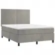 Uporabite to box spring posteljo z vzmetnico in LED osvetlitvijo in uživajte v mirnem spancu! To bo osrednja točka vaše spalnice. Mehak žamet: Žamet je mehka in razkošna tkanina, ki jo prepoznamo po gostem kupu enakomerno rezanih gladkih vlaken. Žametna tkanina ima značilen mehak občutek, zaradi česar je prijetna na dotik.Praktično vzglavje: Vzglavje postelje je nastavljivo po višini po vaših željah. To vzglavje za posteljo vam zagotavlja odlično oporo za hrbet, ko sedite na postelji in berete ali gledate filme.Barvit LED trak: Vnesite igrivost v temo z barvitimi LED lučkami!Ležišče z žepkastimi vzmetmi: Vgrajena individualna žepkasta vzmet je znana po zelo visoki kakovosti, hkrati pa zagotavlja visoko stopnjo vzdržljivosti in prilagodljivosti. Lahko učinkovito absorbira hrup in udarce, ki jih povzročata metanje in obračanje.Koži prijazen nadvložek: Zaščita za ležišče ima trpežno in koži prijazno tkanino, zaradi česar je mehka in udobna. Opomba:Zaradi higienskih razlogov vzmetnice ni mogoče vrniti po odstranitvi ali odprtju embalaže.Režete lahko samo del s simbolom škarij in samo del z USB bo deloval kot prej.Vsakemu izdelku je priložen priročnik za enostavno sestavljanje.Izdelek ima priključek USB, vendar certificiran 5V vir napajanja USB ni priložen.Postelja:Barva: Svetlo sivaMaterial: Žamet (100 % poliester), vezan les, inženirski les, trden macesnov lesCelotne dimenzije: 193 x 144 x 118/128 cm (D x Š x V)Vzmetnica za posteljo:Barva: Bela in svetlo sivaMaterial: Žamet (100 % poliester)Material polnila: Žepkaste vzmeti, penaDimenzije: 140 x 190 x 20 cm (Š x D x V)Nadvložek:Barva: BelaMaterial nadvložka: Blago (100 % poliester)Material polnila: PenaDimenzije: 140 x 190 x 5 cm (Š x D x V)LED trak:Dolžina (vsak): 55 cmNapetost: DC 5 VDolžina kabla USB : 150 cmDolžina električnega kabla: 30 cmIP ocena: IP65S simbolom za rezanje s škarjamiPaket vsebuje:1 x Posteljni okvir1 x Vzglavje1 x Vzmetnica1 x Nadvložek2 x LED trak 3136059