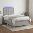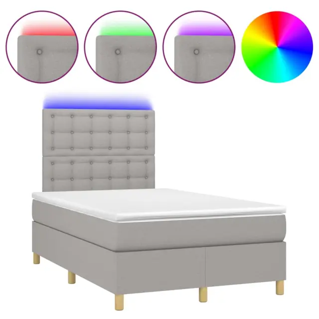 Uporabite to box spring posteljo z vzmetnico in LED osvetlitvijo in uživajte v mirnem spancu! To bo osrednja točka vaše spalnice. Trpežno blago: Blago zagotavlja preprost in čist videz, poleg tega pa je zračno in trpežno.Praktično vzglavje: Vzglavje postelje je nastavljivo po višini po vaših željah. To vzglavje za posteljo vam zagotavlja odlično oporo za hrbet, ko sedite na postelji in berete ali gledate filme.Barvit LED trak: Vnesite igrivost v temo z barvitimi LED lučkami!Ležišče z žepkastimi vzmetmi: Vgrajena individualna žepkasta vzmet je znana po zelo visoki kakovosti, hkrati pa zagotavlja visoko stopnjo vzdržljivosti in prilagodljivosti. Lahko učinkovito absorbira hrup in udarce, ki jih povzročata metanje in obračanje.Koži prijazen nadvložek: Zaščita za ležišče ima trpežno in koži prijazno tkanino, zaradi česar je mehka in udobna. Opomba:Zaradi higienskih razlogov vzmetnice ni mogoče vrniti po odstranitvi ali odprtju embalaže.Režete lahko samo del s simbolom škarij in samo del z USB bo deloval kot prej.Vsakemu izdelku je priložen priročnik za enostavno sestavljanje.Izdelek ima priključek USB, vendar certificiran 5V vir napajanja USB ni priložen.Postelja:Barva: Svetlo sivaMaterial: Blago (100 % poliester), vezan les, inženirski les, trden macesnov lesCelotne dimenzije: 203 x 120 x 118/128 cm (D x Š x V)Vzmetnica za posteljo:Barva: Bela in svetlo sivaMaterial: Blago (100 % poliester)Material polnila: Žepkaste vzmeti, penaDimenzije: 120 x 200 x 20 cm (Š x D x V)Nadvložek:Barva: BelaMaterial nadvložka: Blago (100 % poliester)Material polnila: PenaDimenzije: 120 x 200 x 5 cm (D x Š x V)LED trak:Dolžina: 55 cmNapetost: DC 5 VDolžina kabla USB : 150 cmDolžina električnega kabla: 30 cmIP ocena: IP65S simbolom za rezanje s škarjamiPaket vsebuje:1 x Posteljni okvir1 x Vzglavje1 x Vzmetnica1 x Nadvložek1 x LED trak 3135741