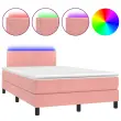 Uporabite to box spring posteljo z vzmetnico in LED osvetlitvijo in uživajte v mirnem spancu! To bo osrednja točka vaše spalnice. Mehak žamet: Žamet je mehka in razkošna tkanina, ki jo prepoznamo po gostem kupu enakomerno rezanih gladkih vlaken. Žametna tkanina ima značilen mehak občutek, zaradi česar je prijetna na dotik.Praktično vzglavje: Vzglavje postelje je nastavljivo po višini po vaših željah. To vzglavje za posteljo vam zagotavlja odlično oporo za hrbet, ko sedite na postelji in berete ali gledate filme.Barvit LED trak: Vnesite igrivost v temo z barvitimi LED lučkami!Ležišče z žepkastimi vzmetmi: Vgrajena individualna žepkasta vzmet je znana po zelo visoki kakovosti, hkrati pa zagotavlja visoko stopnjo vzdržljivosti in prilagodljivosti. Lahko učinkovito absorbira hrup in udarce, ki jih povzročata metanje in obračanje.Koži prijazen nadvložek: Zaščita za ležišče ima trpežno in koži prijazno tkanino, zaradi česar je mehka in udobna. Dobro je vedeti:Zaradi higienskih razlogov vzmetnice ni mogoče vrniti po odstranitvi ali odprtju embalaže.Režete lahko samo del s simbolom škarij in samo del z USB bo deloval kot prej.Izdelek ima priključek USB, ki zahteva certificiran vir napajanja 5 V USB (ni priložen).Postelja:Barva: RozaMaterial: Material: Žamet (100 % poliester), vezan les, inženirski les, trden borov lesCelotne dimenzije: 193 x 123 x 78/88 cm (D x Š x V)Vzmetnica za posteljo:Barva: Roza in belaMaterial: Žamet (100 % poliester)Material polnila: Žepkaste vzmeti, penaDimenzije: 120 x 190 x 20 cm (Š x D x V)Nadvložek:Barva: BelaMaterial nadvložka: Blago (100 % poliester)Material polnila: PenaDimenzije: 120 x 190 x 5 cm (Š x D x V)LED trak:Dolžina: 55 cmNapetost: DC 5 VDolžina kabla USB : 150 cmDolžina električnega kabla: 30 cmIP ocena: IP65S simbolom za rezanje s škarjamiPotrebno sestavljanje: DaPaket vsebuje:1 x Posteljni okvir1 x Vzglavje1 x Vzmetnica1 x Nadvložek1 x LED trak 3270152