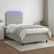 Uporabite to box spring posteljo z vzmetnico in LED osvetlitvijo in uživajte v mirnem spancu! To bo osrednja točka vaše spalnice. Trpežno blago: Blago zagotavlja preprost in čist videz, poleg tega pa je zračno in trpežno.Praktično vzglavje: Vzglavje postelje je nastavljivo po višini po vaših željah. To vzglavje za posteljo vam zagotavlja odlično oporo za hrbet, ko sedite na postelji in berete ali gledate filme.Barvit LED trak: Vnesite igrivost v temo z barvitimi LED lučkami!Ležišče z žepkastimi vzmetmi: Vgrajena individualna žepkasta vzmet je znana po zelo visoki kakovosti, hkrati pa zagotavlja visoko stopnjo vzdržljivosti in prilagodljivosti. Lahko učinkovito absorbira hrup in udarce, ki jih povzročata metanje in obračanje.Koži prijazen nadvložek: Zaščita za ležišče ima trpežno in koži prijazno tkanino, zaradi česar je mehka in udobna. Dobro je vedeti:Zaradi higienskih razlogov vzmetnice ni mogoče vrniti po odstranitvi ali odprtju embalaže.Režete lahko samo del s simbolom škarij in samo del z USB bo deloval kot prej.Izdelek ima priključek USB, ki zahteva certificiran vir napajanja 5 V USB (ni priložen).Postelja:Barva: Svetlo sivaMaterial: Tkanina (100 % poliester), vezan les, trden borov lesCelotne dimenzije: 193 x 123 x 118/128 cm (D x Š x V)Vzmetnica za posteljo:Barva: Bela in svetlo sivaMaterial: Blago (100 % poliester)Material polnila: Žepkaste vzmeti, penaDimenzije: 120 x 190 x 20 cm (Š x D x V)Nadvložek:Barva: BelaMaterial nadvložka: Blago (100 % poliester)Material polnila: PenaDimenzije: 120 x 190 x 5 cm (Š x D x V)LED trak:Dolžina: 55 cmNapetost: DC 5 VDolžina kabla USB : 150 cmDolžina električnega kabla: 30 cmIP ocena: IP65S simbolom za rezanje s škarjamiPotrebno sestavljanje: DaPaket vsebuje:1 x Posteljni okvir2 x Vzglavje1 x Vzmetnica1 x Nadvložek1 x LED trak 3270204