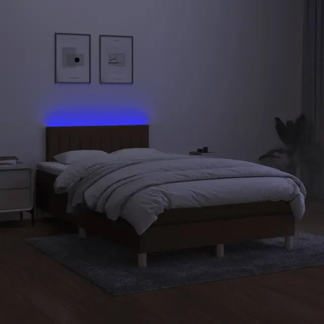 Uporabite to box spring posteljo z vzmetnico in LED osvetlitvijo in uživajte v mirnem spancu! To bo osrednja točka vaše spalnice. Trpežno blago: Blago zagotavlja preprost in čist videz, poleg tega pa je zračno in trpežno.Praktično vzglavje: Vzglavje postelje je nastavljivo po višini po vaših željah. To vzglavje za posteljo vam zagotavlja odlično oporo za hrbet, ko sedite na postelji in berete ali gledate filme.Barvit LED trak: Vnesite igrivost v temo z barvitimi LED lučkami!Ležišče z žepkastimi vzmetmi: Vgrajena individualna žepkasta vzmet je znana po zelo visoki kakovosti, hkrati pa zagotavlja visoko stopnjo vzdržljivosti in prilagodljivosti. Lahko učinkovito absorbira hrup in udarce, ki jih povzročata metanje in obračanje.Koži prijazen nadvložek: Zaščita za ležišče ima trpežno in koži prijazno tkanino, zaradi česar je mehka in udobna. Dobro je vedeti:Zaradi higienskih razlogov vzmetnice ni mogoče vrniti po odstranitvi ali odprtju embalaže.Režete lahko samo del s simbolom škarij in samo del z USB bo deloval kot prej.Izdelek ima priključek USB, ki zahteva certificiran vir napajanja 5 V USB (ni priložen).Postelja:Barva: Temno rjavaMaterial: Blago (100 % poliester), vezan les, inženirski les, trden macesnov lesCelotne dimenzije: 193 x 123 x 78/88 cm (D x Š x V)Vzmetnica za posteljo:Barva: Bela in temno rjavaMaterial: Blago (100 % poliester)Material polnila: Žepkaste vzmeti, penaDimenzije: 120 x 190 x 20 cm (Š x D x V)Nadvložek:Barva: BelaMaterial nadvložka: Blago (100 % poliester)Material polnila: PenaDimenzije: 120 x 190 x 5 cm (Š x D x V)LED trak:Dolžina: 55 cmNapetost: DC 5 VDolžina kabla USB : 150 cmDolžina električnega kabla: 30 cmIP ocena: IP65S simbolom za rezanje s škarjamiPotrebno sestavljanje: Da Paket vsebuje:1 x Posteljni okvir1 x Vzglavje1 x Vzmetnica1 x Nadvložek1 x LED trak 3270105