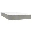 Uporabite to box spring posteljo za uživanje v mirnem spancu! Ponuja maksimalno sprostitev in prijeten spanec. Mehak žamet: Žamet je mehka in razkošna tkanina, ki jo prepoznamo po gostem kupu enakomerno rezanih gladkih vlaken. Žametna tkanina ima značilen mehak občutek, zaradi česar je prijetna na dotik.Praktično vzglavje: Vzglavje postelje je nastavljivo po višini po vaših željah. To vzglavje za posteljo vam zagotavlja odlično oporo za hrbet, ko sedite na postelji in berete ali gledate filme.Ležišče z žepkastimi vzmetmi: Vgrajena individualna žepkasta vzmet je znana po zelo visoki kakovosti, hkrati pa zagotavlja visoko stopnjo vzdržljivosti in prilagodljivosti. Lahko učinkovito absorbira hrup in udarce, ki jih povzročata metanje in obračanje.Srednje trda opora: Posteljna vzmetnica odlično zagotavlja dodatno stabilnost in ravno pravšnjo stopnjo čvrstosti, ne da bi pri tem žrtvovala udobje. Zato je idealna za tiste, ki spijo na hrbtu ali trebuhu.Koži prijazen nadvložek: Zaščita za ležišče ima trpežno in koži prijazno tkanino, zaradi česar je mehka in udobna.Večnamenska klop: Ta klop lahko služi kot dodaten sedež v vašem domu. Lahko se uporablja tudi kot zaključek posteljne klopi. Dobro je vedeti:Zaradi higienskih razlogov vzmetnice ni mogoče vrniti po odstranitvi ali odprtju embalaže.Postelja:Barva: Svetlo sivaMaterial: Žamet (100 % poliester), vezan les, trden borov lesDimenzije: 193 x 123 x 118/128 cm (D x Š x V)Vzmetnica za posteljo:Barva: Svetlo siva in belaMaterial: Žamet (100 % poliester)Material polnila: Žepkaste vzmeti, penaDimenzije: 120 x 190 x 20 cm (Š x D x V)Nadvložek:Barva: BelaMaterial: Blago (100 % poliester)Material polnila: PenaDimenzije: 120 x 190 x 5 cm (Š x D x V)Klop:Barva: Svetlo sivaMaterial: Žamet (100 % poliester), vezan lesDimenzije: 70 x 30 x 30 cm (Š x G x V)Potrebno sestavljanje: DaPaket vsebuje:1 x Posteljni okvir2 x Vzglavje1 x Vzmetnica1 x Nadvložek1 x Klop 3270463