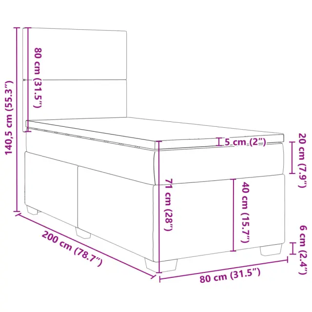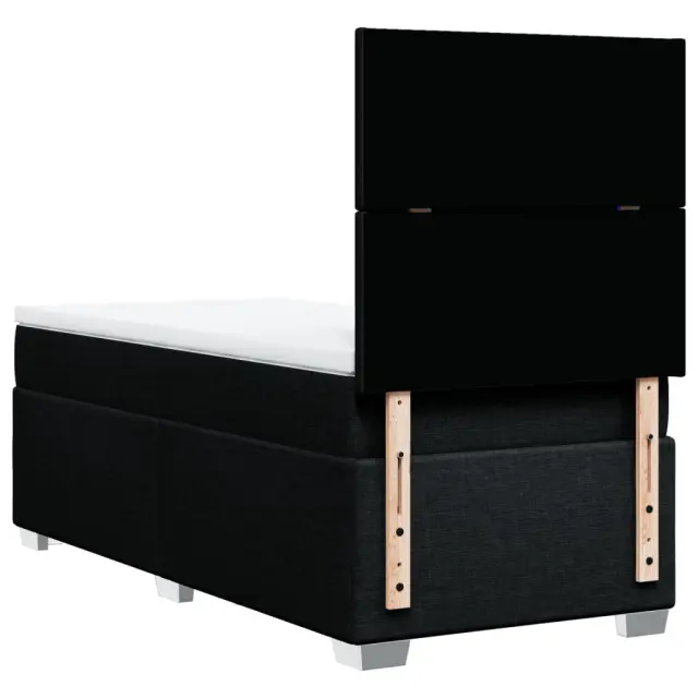Uporabite to posteljo za uživanje v mirnem spancu! Ponuja maksimalno sprostitev in prijeten spanec. Mehak in trpežen material: Tkanina iz poliestra združuje mehkobo, zračnost in trpežnost ter vam zagotavlja popolno udobje in prijetnost.Ležišče z žepkastimi vzmetmi: Ta vzmetnica z žepkastimi vzmetmi ima posamezne žepkaste vzmeti, ki delujejo neodvisno in zagotavljajo prilagojeno podporo, saj se odzivajo le na pritisk na posameznem območju. Takšna zasnova preprečuje, da bi se ležišče "zvijalo skupaj", in zmanjšuje prenos gibanja v primerjavi s tradicionalnimi ležišči z odprtimi vzmetmi. Vsaka žepkasta vzmet podpira telo posebej.Nastavljiva višina vzglavja: Višina vzglavja je nastavljiva po vaših željah.Udobna vzmetnica: Ta nadvložek za vzmetnico z mehko in zračno površino poveča podporo in udobje ter hkrati podaljša življenjsko dobo vaše vzmetnice. Odstranljiva prevleka omogoča enostavno pranje, zato je vzdrževanje enostavno.Letvice za optimalno podporo: Okvir postelje je opremljen z letvicami, ki zagotavljajo osnovno podporo in zračnost vašega ležišča. Dobro je vedeti:Zaradi higienskih razlogov vzmetnice ni mogoče vrniti po odstranitvi ali odprtju embalaže.Posteljni okvir z vzglavjem:Barva: ČrnaMaterial: Blago (100 % poliester), vezan les, konstruiran lesDimenzije: 200 x 80 x 140,5/150,5 cm (D x Š x V)Utrjene plastične nogicePotrebno sestavljanje: DaVzmetnica:Barva: Bela in črnaMaterial: Blago (100 % poliester)Material polnila: Žepkaste vzmeti, penaTrdnost: SrednjaDimenzije: 80 x 200 x 20 cm (Š x D x V)Nadvzmetnica:Barva: BelaMaterial: Blago (100 % poliester)Material polnila: PenaDimenzije: 80 x 200 x 5 cm (Š x D x V)Odstranljiva in pralna prevlekaPaket vsebuje:1 x Posteljni okvir1 x Vzglavje1 x Vzmetnica1 x Nadvložek 3290310