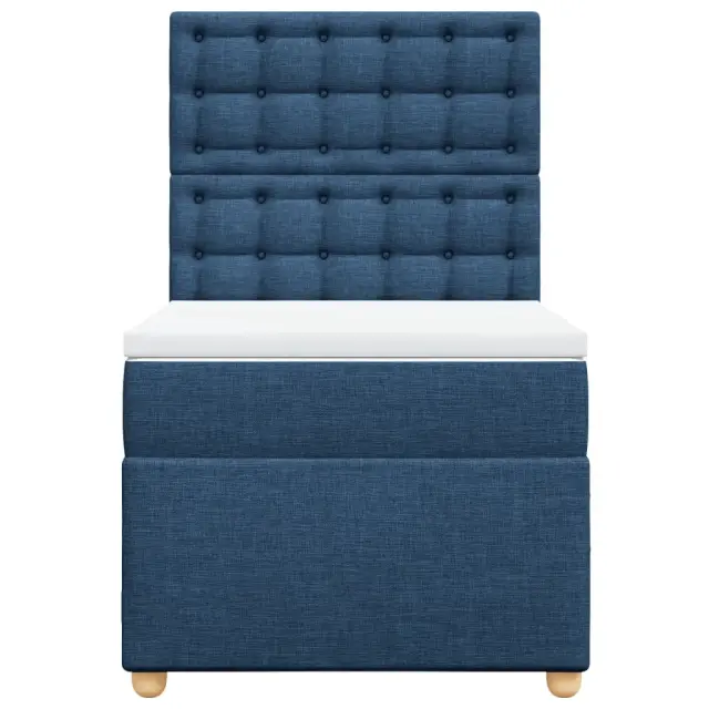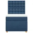 Uporabite to posteljo za uživanje v mirnem spancu! Ponuja maksimalno sprostitev in prijeten spanec. Mehak in trpežen material: Tkanina iz poliestra združuje mehkobo, zračnost in trpežnost ter vam zagotavlja popolno udobje in prijetnost.Ležišče z žepkastimi vzmetmi: Ta vzmetnica z žepkastimi vzmetmi ima posamezne žepkaste vzmeti, ki delujejo neodvisno in zagotavljajo prilagojeno podporo, saj se odzivajo le na pritisk na posameznem območju. Takšna zasnova preprečuje, da bi se ležišče "zvijalo skupaj", in zmanjšuje prenos gibanja v primerjavi s tradicionalnimi ležišči z odprtimi vzmetmi. Vsaka žepkasta vzmet podpira telo posebej.Nastavljiva višina vzglavja: Višina vzglavja je nastavljiva po vaših željah.Udobna vzmetnica: Ta nadvložek za vzmetnico z mehko in zračno površino poveča podporo in udobje ter hkrati podaljša življenjsko dobo vaše vzmetnice. Odstranljiva prevleka omogoča enostavno pranje, zato je vzdrževanje enostavno.Letvice za optimalno podporo: Okvir postelje je opremljen z letvicami, ki zagotavljajo osnovno podporo in zračnost vašega ležišča. Dobro je vedeti:Zaradi higienskih razlogov vzmetnice ni mogoče vrniti po odstranitvi ali odprtju embalaže.Posteljni okvir z vzglavjem:Barva: ModraMaterial: Blago (100 % poliester), vezan les, konstruiran lesDimenzije: 200 x 80 x 140,5/150,5 cm (D x Š x V)Utrjene plastične nogicePotrebno sestavljanje: DaVzmetnica:Barva: Bela in modraMaterial: Blago (100 % poliester)Material polnila: Žepkaste vzmeti, penaTrdnost: SrednjaDimenzije: 80 x 200 x 20 cm (Š x D x V)Nadvzmetnica:Barva: BelaMaterial: Blago (100 % poliester)Material polnila: PenaDimenzije: 80 x 200 x 5 cm (Š x D x V)Odstranljiva in pralna prevlekaPaket vsebuje:1 x Posteljni okvir1 x Vzglavje1 x Vzmetnica1 x Nadvložek 3291127