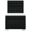Uporabite to posteljo za uživanje v mirnem spancu! Ponuja maksimalno sprostitev in prijeten spanec. Mehak in trpežen material: Tkanina iz poliestra združuje mehkobo, zračnost in trpežnost ter vam zagotavlja popolno udobje in prijetnost.Ležišče z žepkastimi vzmetmi: Ta vzmetnica z žepkastimi vzmetmi ima posamezne žepkaste vzmeti, ki delujejo neodvisno in zagotavljajo prilagojeno podporo, saj se odzivajo le na pritisk na posameznem območju. Takšna zasnova preprečuje, da bi se ležišče "zvijalo skupaj", in zmanjšuje prenos gibanja v primerjavi s tradicionalnimi ležišči z odprtimi vzmetmi. Vsaka žepkasta vzmet podpira telo posebej.Nastavljiva višina vzglavja: Višina vzglavja je nastavljiva po vaših željah.Udobna vzmetnica: Ta nadvložek za vzmetnico z mehko in zračno površino poveča podporo in udobje ter hkrati podaljša življenjsko dobo vaše vzmetnice. Odstranljiva prevleka omogoča enostavno pranje, zato je vzdrževanje enostavno.Letvice za optimalno podporo: Okvir postelje je opremljen z letvicami, ki zagotavljajo osnovno podporo in zračnost vašega ležišča. Dobro je vedeti:Zaradi higienskih razlogov vzmetnice ni mogoče vrniti po odstranitvi ali odprtju embalaže.Posteljni okvir z vzglavjem:Barva: ČrnaMaterial: Blago (100 % poliester), vezan les, konstruiran lesDimenzije: 200 x 80 x 140,5/150,5 cm (D x Š x V)Utrjene plastične nogicePotrebno sestavljanje: DaVzmetnica:Barva: Bela in črnaMaterial: Blago (100 % poliester)Material polnila: Žepkaste vzmeti, penaTrdnost: SrednjaDimenzije: 80 x 200 x 20 cm (Š x D x V)Nadvzmetnica:Barva: BelaMaterial: Blago (100 % poliester)Material polnila: PenaDimenzije: 80 x 200 x 5 cm (Š x D x V)Odstranljiva in pralna prevlekaPaket vsebuje:1 x Posteljni okvir1 x Vzglavje1 x Vzmetnica1 x Nadvložek 3290331