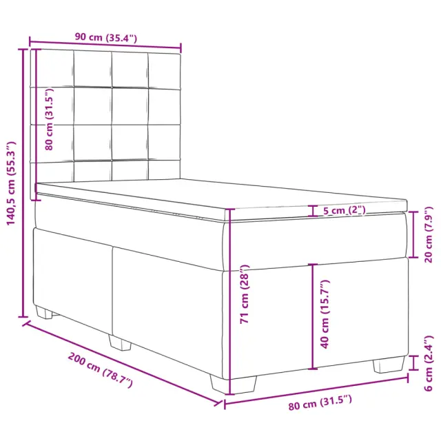 Uporabite to posteljo za uživanje v mirnem spancu! Ponuja maksimalno sprostitev in prijeten spanec. Mehak in trpežen material: Tkanina iz poliestra združuje mehkobo, zračnost in trpežnost ter vam zagotavlja popolno udobje in prijetnost.Ležišče z žepkastimi vzmetmi: Ta vzmetnica z žepkastimi vzmetmi ima posamezne žepkaste vzmeti, ki delujejo neodvisno in zagotavljajo prilagojeno podporo, saj se odzivajo le na pritisk na posameznem območju. Takšna zasnova preprečuje, da bi se ležišče "zvijalo skupaj", in zmanjšuje prenos gibanja v primerjavi s tradicionalnimi ležišči z odprtimi vzmetmi. Vsaka žepkasta vzmet podpira telo posebej.LED osvetlitev za prijeten ambient: To posteljo odlikuje LED osvetlitev, ki jo je mogoče preprosto nastaviti in tako ustvariti posebno svetlobno predstavo. Prilagodite lahko načine, barve in svetlost ter tako izboljšate vzdušje v notranjem prostoru.Nastavljiva višina vzglavja: Višina vzglavja je nastavljiva po vaših željah.Udobna vzmetnica: Ta nadvložek za vzmetnico z mehko in zračno površino poveča podporo in udobje ter hkrati podaljša življenjsko dobo vaše vzmetnice. Odstranljiva prevleka omogoča enostavno pranje, zato je vzdrževanje enostavno.Dobro je vedeti:Izdelek ima priključek USB, ki zahteva certificiran vir napajanja 5 V USB (ni priložen).Zaradi higienskih razlogov vzmetnice ni mogoče vrniti po odstranitvi ali odprtju embalaže.Režete lahko samo del s simbolom škarij in samo del z USB bo deloval kot prej.Posteljni okvir z vzglavjem:Barva: ModraMaterial: Blago (100 % poliester), konstruiran les, vezan lesDimenzije: 200 x 80 x 140,5/150,5 cm (D x Š x V)Utrjene plastične nogicePotrebno sestavljanje: DaVzmetnica:Barva: Bela in modraMaterial: Blago (100 % poliester)Material polnila: Žepkaste vzmeti, penaDimenzije: 200 x 80 x 20 cm (Š x D x V)Trdnost: SrednjaNadvzmetnica:Barva: BelaMaterial: Blago (100 % poliester)Material polnila: PenaDimenzije: 200 x 80 x 5 cm (Š x D x V)Odstranljiva in pralna prevlekaLED trak:Dolžina: 55 cmNapetost: DC 5 VDolžina kabla USB : 150 cmDolžina električnega kabla: 30 cmIP ocena: IP65S simbolom za rezanje s škarjamiPaket vsebuje:1 x Posteljni okvir1 x Vzglavje1 x Vzmetnica1 x Nadvložek1 x LED trak 3292621