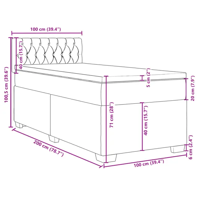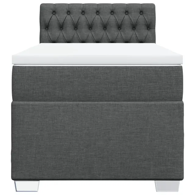 Uporabite to posteljo za uživanje v mirnem spancu! Ponuja maksimalno sprostitev in prijeten spanec. Mehak in trpežen material: Tkanina iz poliestra združuje mehkobo, zračnost in trpežnost ter vam zagotavlja popolno udobje in prijetnost.Ležišče z žepkastimi vzmetmi: Ta vzmetnica z žepkastimi vzmetmi ima posamezne žepkaste vzmeti, ki delujejo neodvisno in zagotavljajo prilagojeno podporo, saj se odzivajo le na pritisk na posameznem območju. Takšna zasnova preprečuje, da bi se ležišče "zvijalo skupaj", in zmanjšuje prenos gibanja v primerjavi s tradicionalnimi ležišči z odprtimi vzmetmi. Vsaka žepkasta vzmet podpira telo posebej.Udobna vzmetnica: Ta nadvložek za vzmetnico z mehko in zračno površino poveča podporo in udobje ter hkrati podaljša življenjsko dobo vaše vzmetnice. Odstranljiva prevleka omogoča enostavno pranje, zato je vzdrževanje enostavno.Udobna opora: To vzglavje za posteljo vam zagotavlja odlično oporo za hrbet, ko sedite na postelji in berete ali gledate filme.Stabilne in vzdržljive noge: Ta postelja je podprta z robustnimi nogami, ki zagotavljajo stabilnost, varnost in trdnost. Dobro je vedeti:Zaradi higienskih razlogov vzmetnice ni mogoče vrniti po odstranitvi ali odprtju embalaže.Posteljni okvir z vzglavjem:Barva: Temno sivaMaterial: Blago (100 % poliester), vezan les, konstruiran lesDimenzije: 200 x 100 x 100,5 cm (D x Š x V)Utrjene plastične nogiceVzmetnica:Barva: Bela in temno sivaMaterial prevleke: Tkanina (100 % poliester)Material polnila: Žepkaste vzmeti, penaTrdnost: SrednjaDimenzije: 100 x 200 x 20 cm (Š x D x V)Nadvzmetnica:Barva: BelaMaterial: Blago (100 % poliester)Material polnila: PenaDimenzije: 100 x 200 x 5 cm (Š x D x V)Odstranljiva in pralna prevlekaPaket vsebuje:1 x Posteljni okvir1 x Vzglavje1 x Vzmetnica1 x Nadvložek 3285807