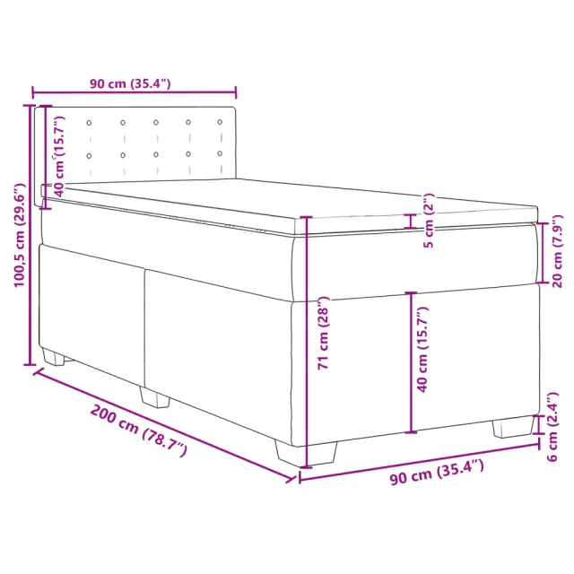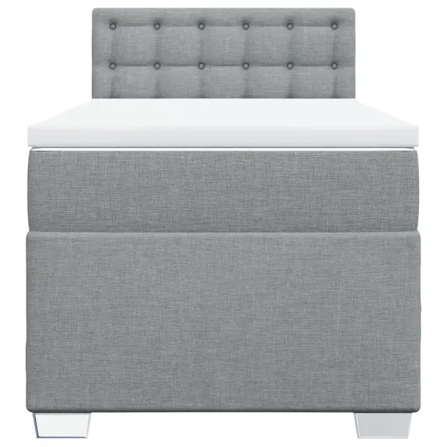 Uporabite to posteljo za uživanje v mirnem spancu! Ponuja maksimalno sprostitev in prijeten spanec. Mehak in trpežen material: Tkanina iz poliestra združuje mehkobo, zračnost in trpežnost ter vam zagotavlja popolno udobje in prijetnost.Ležišče z žepkastimi vzmetmi: Ta vzmetnica z žepkastimi vzmetmi ima posamezne žepkaste vzmeti, ki delujejo neodvisno in zagotavljajo prilagojeno podporo, saj se odzivajo le na pritisk na posameznem območju. Takšna zasnova preprečuje, da bi se ležišče "zvijalo skupaj", in zmanjšuje prenos gibanja v primerjavi s tradicionalnimi ležišči z odprtimi vzmetmi. Vsaka žepkasta vzmet podpira telo posebej.Udobna vzmetnica: Ta nadvložek za vzmetnico z mehko in zračno površino poveča podporo in udobje ter hkrati podaljša življenjsko dobo vaše vzmetnice. Odstranljiva prevleka omogoča enostavno pranje, zato je vzdrževanje enostavno.Udobna opora: To vzglavje za posteljo vam zagotavlja odlično oporo za hrbet, ko sedite na postelji in berete ali gledate filme.Stabilne in vzdržljive noge: Ta postelja je podprta z robustnimi nogami, ki zagotavljajo stabilnost, varnost in trdnost. Dobro je vedeti:Zaradi higienskih razlogov vzmetnice ni mogoče vrniti po odstranitvi ali odprtju embalaže.Posteljni okvir z vzglavjem:Barva: Svetlo sivaMaterial: Blago (100 % poliester), vezan les, konstruiran lesDimenzije: 200 x 90 x 100,5 cm (D x Š x V)Utrjene plastične nogiceVzmetnica:Barva: Bela in svetlo sivaMaterial prevleke: Tkanina (100 % poliester)Material polnila: Žepkaste vzmeti, penaTrdnost: SrednjaDimenzije: 90 x 200 x 20 cm (Š x D x V)Nadvzmetnica:Barva: BelaMaterial: Blago (100 % poliester)Material polnila: PenaDimenzije: 90 x 200 x 5 cm (Š x D x V)Odstranljiva in pralna prevlekaPaket vsebuje:1 x Posteljni okvir1 x Vzglavje1 x Vzmetnica1 x Nadvložek 3285785