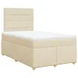 Uporabite to posteljo za uživanje v mirnem spancu! Ponuja maksimalno sprostitev in prijeten spanec. Mehak in trpežen material: Tkanina iz poliestra združuje mehkobo, zračnost in trpežnost ter vam zagotavlja popolno udobje in prijetnost.Ležišče z žepkastimi vzmetmi: Ta vzmetnica z žepkastimi vzmetmi ima posamezne žepkaste vzmeti, ki delujejo neodvisno in zagotavljajo prilagojeno podporo, saj se odzivajo le na pritisk na posameznem območju. Takšna zasnova preprečuje, da bi se ležišče "zvijalo skupaj", in zmanjšuje prenos gibanja v primerjavi s tradicionalnimi ležišči z odprtimi vzmetmi. Vsaka žepkasta vzmet podpira telo posebej.Nastavljiva višina vzglavja: Višina vzglavja je nastavljiva po vaših željah.Udobna vzmetnica: Ta nadvložek za vzmetnico z mehko in zračno površino poveča podporo in udobje ter hkrati podaljša življenjsko dobo vaše vzmetnice. Odstranljiva prevleka omogoča enostavno pranje, zato je vzdrževanje enostavno.Letvice za optimalno podporo: Okvir postelje je opremljen z letvicami, ki zagotavljajo osnovno podporo in zračnost vašega ležišča. Dobro je vedeti:Zaradi higienskih razlogov vzmetnice ni mogoče vrniti po odstranitvi ali odprtju embalaže.Posteljni okvir z vzglavjem:Barva: KremMaterial: Blago (100 % poliester), vezan les, konstruiran lesDimenzije: 190 x 120 x 140,5/150,5 cm (D x Š x V)Utrjene plastične nogicePodporne noge iz trdnega borovega lesaPotrebno sestavljanje: DaVzmetnica:Barva: Bela in kremnaMaterial: Blago (100 % poliester)Material polnila: Žepkaste vzmeti, penaTrdnost: SrednjaDimenzije: 120 x 190 x 20 cm (Š x D x V)Nadvzmetnica:Barva: BelaMaterial: Blago (100 % poliester)Material polnila: PenaDimenzije: 120 x 190 x 5 cm (Š x D x V)Odstranljiva in pralna prevlekaPaket vsebuje:1 x Posteljni okvir1 x Vzglavje1 x Vzmetnica1 x Nadvložek 3291224