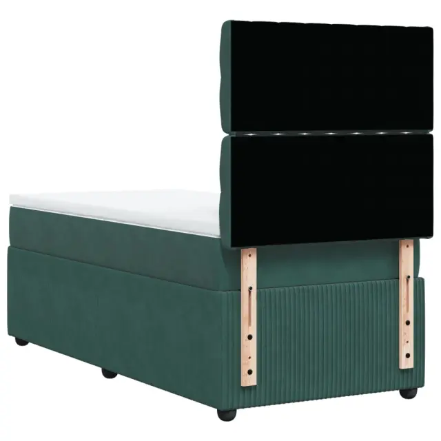 Uporabite to posteljo za uživanje v mirnem spancu! Ponuja maksimalno sprostitev in prijeten spanec. Mehak in udoben material: Vlažna tkanina iz žameta ima mehko in gladko površino, ki zagotavlja prijeten občutek ter vam zagotavlja toploto in popolno udobje. Ležišče z žepkastimi vzmetmi: Ta vzmetnica z žepkastimi vzmetmi ima posamezne žepkaste vzmeti, ki delujejo neodvisno in zagotavljajo prilagojeno podporo, saj se odzivajo le na pritisk na posameznem območju. Takšna zasnova preprečuje, da bi se ležišče "zvijalo skupaj", in zmanjšuje prenos gibanja v primerjavi s tradicionalnimi ležišči z odprtimi vzmetmi. Vsaka žepkasta vzmet podpira telo posebej. LED osvetlitev za prijeten ambient: To posteljo odlikuje LED osvetlitev, ki jo je mogoče preprosto nastaviti in tako ustvariti posebno svetlobno predstavo. Prilagodite lahko načine, barve in svetlost ter tako izboljšate vzdušje v notranjem prostoru. Nastavljiva višina vzglavja: Višina vzglavja je nastavljiva po vaših željah. Udobna vzmetnica: Ta nadvložek za vzmetnico z mehko in zračno površino poveča podporo in udobje ter hkrati podaljša življenjsko dobo vaše vzmetnice. Odstranljiva prevleka omogoča enostavno pranje, zato je vzdrževanje enostavno. Dobro je vedeti:Izdelek ima priključek USB, ki zahteva certificiran vir napajanja 5 V USB (ni priložen). Zaradi higienskih razlogov vzmetnice ni mogoče vrniti po odstranitvi ali odprtju embalaže. Režete lahko samo del s simbolom škarij in samo del z USB bo deloval kot prej.Posteljni okvir z vzglavjem:Barva: Temno zelenaMaterial: Žamet (100 % poliester), vezan les, konstruiran lesDimenzije: 200 x 80 x 140,5/150,5 cm (D x Š x V)Utrjene plastične nogicePotrebno sestavljanje: DaVzmetnica:Barva: Bela in temno zelenaMaterial: Žamet (100 % poliester)Material polnila: Žepkaste vzmeti, penaTrdnost: SrednjaDimenzije: 80 x 200 x 20 cm (Š x D x V)Nadvzmetnica:Barva: BelaMaterial: Blago (100 % poliester)Material polnila: PenaDimenzije: 80 x 200 x 5 cm (Š x D x V)Odstranljiva in pralna prevlekaLED trak:Dolžina: 55 cmNapetost: DC 5 VDolžina kabla USB : 150 cmDolžina električnega kabla: 30 cmIP ocena: IP65S simbolom za rezanje s škarjamiPaket vsebuje:1 x Posteljni okvir1 x Vzglavje1 x Vzmetnica1 x Nadvložek1 x LED trak 3294499