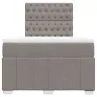 Uporabite to posteljo za uživanje v mirnem spancu! Ponuja maksimalno sprostitev in prijeten spanec. Mehak in trpežen material: Tkanina iz poliestra združuje mehkobo, zračnost in trpežnost ter vam zagotavlja popolno udobje in prijetnost.Ležišče z žepkastimi vzmetmi: Ta vzmetnica z žepkastimi vzmetmi ima posamezne žepkaste vzmeti, ki delujejo neodvisno in zagotavljajo prilagojeno podporo, saj se odzivajo le na pritisk na posameznem območju. Takšna zasnova preprečuje, da bi se ležišče "zvijalo skupaj", in zmanjšuje prenos gibanja v primerjavi s tradicionalnimi ležišči z odprtimi vzmetmi. Vsaka žepkasta vzmet podpira telo posebej.Nastavljiva višina vzglavja: Višina vzglavja je nastavljiva po vaših željah.Udobna vzmetnica: Ta nadvložek za vzmetnico z mehko in zračno površino poveča podporo in udobje ter hkrati podaljša življenjsko dobo vaše vzmetnice. Odstranljiva prevleka omogoča enostavno pranje, zato je vzdrževanje enostavno.Letvice za optimalno podporo: Okvir postelje je opremljen z letvicami, ki zagotavljajo osnovno podporo in zračnost vašega ležišča. Dobro je vedeti:Zaradi higienskih razlogov vzmetnice ni mogoče vrniti po odstranitvi ali odprtju embalaže.Posteljni okvir z vzglavjem:Barva: Taupe Material: Blago (100 % poliester), vezan les, konstruiran lesDimenzije: 190 x 120 x 140,5/150,5 cm (D x Š x V)Utrjene plastične nogicePodporne noge iz trdnega borovega lesaPotrebno sestavljanje: DaVzmetnica:Barva: Bela in taupeMaterial: Blago (100 % poliester)Material polnila: Žepkaste vzmeti, penaTrdnost: SrednjaDimenzije: 120 x 190 x 20 cm (Š x D x V)Nadvzmetnica:Barva: BelaMaterial: Blago (100 % poliester)Material polnila: PenaDimenzije: 120 x 190 x 5 cm (Š x D x V)Odstranljiva in pralna prevlekaPaket vsebuje:1 x Posteljni okvir1 x Vzglavje1 x Vzmetnica1 x Nadvložek 3291618
