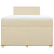 Uporabite to posteljo za uživanje v mirnem spancu! Ponuja maksimalno sprostitev in prijeten spanec. Mehak in trpežen material: Tkanina iz poliestra združuje mehkobo, zračnost in trpežnost ter vam zagotavlja popolno udobje in prijetnost.Ležišče z žepkastimi vzmetmi: Ta vzmetnica z žepkastimi vzmetmi ima posamezne žepkaste vzmeti, ki delujejo neodvisno in zagotavljajo prilagojeno podporo, saj se odzivajo le na pritisk na posameznem območju. Takšna zasnova preprečuje, da bi se ležišče "zvijalo skupaj", in zmanjšuje prenos gibanja v primerjavi s tradicionalnimi ležišči z odprtimi vzmetmi. Vsaka žepkasta vzmet podpira telo posebej.Udobna vzmetnica: Ta nadvložek za vzmetnico z mehko in zračno površino poveča podporo in udobje ter hkrati podaljša življenjsko dobo vaše vzmetnice. Odstranljiva prevleka omogoča enostavno pranje, zato je vzdrževanje enostavno.Letvice za optimalno podporo: Okvir postelje je opremljen z letvicami, ki zagotavljajo osnovno podporo in zračnost vašega ležišča. Dobro je vedeti:Zaradi higienskih razlogov vzmetnice ni mogoče vrniti po odstranitvi ali odprtju embalaže.Posteljni okvir z vzglavjem:Barva: KremMaterial: Tkanina (100 % poliester), vezan les, inženirski les, trdna borovinaDimenzije: 190 x 120 x 100,5 cm (D x Š x V)Utrjene plastične nogicePodporne noge iz trdnega borovega lesaPotrebno sestavljanje: DaVzmetnica:Barva: Bela in kremnaMaterial: Blago (100 % poliester)Material polnila: Žepkaste vzmeti, penaTrdnost: SrednjaDimenzije: 120 x 190 x 20 cm (Š x D x V)Nadvzmetnica:Barva: BelaMaterial: Blago (100 % poliester)Material polnila: PenaDimenzije: 120 x 190 x 5 cm (Š x D x V)Odstranljiva in pralna prevlekaPaket vsebuje:1 x Posteljni okvir1 x Vzglavje1 x Vzmetnica1 x Nadvložek 3286617