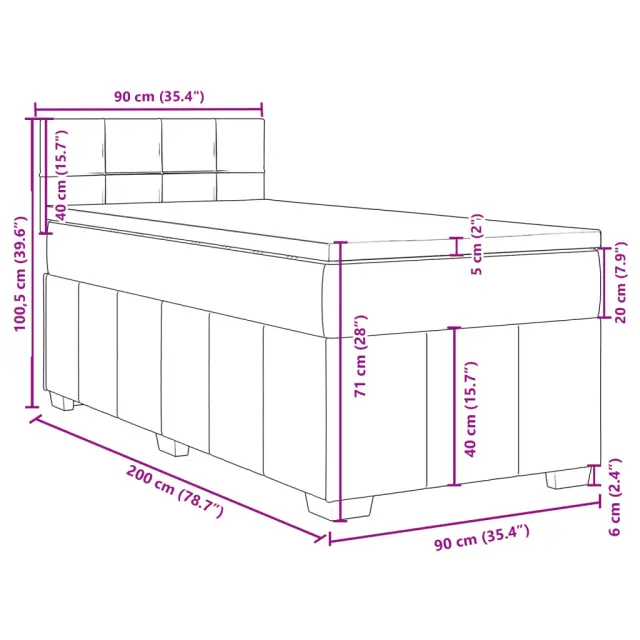 Uporabite to posteljo za uživanje v mirnem spancu! Ponuja maksimalno sprostitev in prijeten spanec. Mehak in trpežen material: Tkanina iz poliestra združuje mehkobo, zračnost in trpežnost ter vam zagotavlja popolno udobje in prijetnost.Ležišče z žepkastimi vzmetmi: Ta vzmetnica z žepkastimi vzmetmi ima posamezne žepkaste vzmeti, ki delujejo neodvisno in zagotavljajo prilagojeno podporo, saj se odzivajo le na pritisk na posameznem območju. Takšna zasnova preprečuje, da bi se ležišče "zvijalo skupaj", in zmanjšuje prenos gibanja v primerjavi s tradicionalnimi ležišči z odprtimi vzmetmi. Vsaka žepkasta vzmet podpira telo posebej.LED osvetlitev za prijeten ambient: To posteljo odlikuje LED osvetlitev, ki jo je mogoče preprosto nastaviti in tako ustvariti posebno svetlobno predstavo. Prilagodite lahko načine, barve in svetlost ter tako izboljšate vzdušje v notranjem prostoru.Udobna vzmetnica: Ta nadvložek za vzmetnico z mehko in zračno površino poveča podporo in udobje ter hkrati podaljša življenjsko dobo vaše vzmetnice. Odstranljiva prevleka omogoča enostavno pranje, zato je vzdrževanje enostavno. Dobro je vedeti:Izdelek ima priključek USB, ki zahteva certificiran vir napajanja 5 V USB (ni priložen).Zaradi higienskih razlogov vzmetnice ni mogoče vrniti po odstranitvi ali odprtju embalaže.Režete lahko samo del s simbolom škarij in samo del z USB bo deloval kot prej.Posteljni okvir z vzglavjem:Barva: Temno sivaMaterial: Blago (100 % poliester), vezan les, konstruiran lesDimenzije: 200 x 90 x 100,5 cm (D x Š x V)Utrjene plastične nogicePotrebno sestavljanje: DaVzmetnica:Barva: Bela in temno sivaMaterial: Blago (100 % poliester)Material polnila: Žepkaste vzmeti, penaTrdnost: SrednjaDimenzije: 90 x 200 x 20 cm (Š x D x V)Nadvzmetnica:Barva: BelaMaterial: Blago (100 % poliester)Material polnila: PenaDimenzije: 90 x 200 x 5 cm (Š x D x V)Odstranljiva in pralna prevlekaLED trak:Dolžina: 55 cmNapetost: DC 5 VDolžina kabla USB : 150 cmDolžina električnega kabla: 30 cmIP ocena: IP65S simbolom za rezanje s škarjamiPaket vsebuje:1 x Posteljni okvir1 x Vzglavje1 x Vzmetnica1 x Nadvložek1 x LED trak 3289252