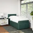 Uporabite to posteljo za uživanje v mirnem spancu! Ponuja maksimalno sprostitev in prijeten spanec. Mehak in udoben material: Vlažna tkanina iz žameta ima mehko in gladko površino, ki zagotavlja prijeten občutek ter vam zagotavlja toploto in popolno udobje.Ležišče z žepkastimi vzmetmi: Ta vzmetnica z žepkastimi vzmetmi ima posamezne žepkaste vzmeti, ki delujejo neodvisno in zagotavljajo prilagojeno podporo, saj se odzivajo le na pritisk na posameznem območju. Takšna zasnova preprečuje, da bi se ležišče "zvijalo skupaj", in zmanjšuje prenos gibanja v primerjavi s tradicionalnimi ležišči z odprtimi vzmetmi. Vsaka žepkasta vzmet podpira telo posebej.Udobna vzmetnica: Ta nadvložek za vzmetnico z mehko in zračno površino poveča podporo in udobje ter hkrati podaljša življenjsko dobo vaše vzmetnice. Odstranljiva prevleka omogoča enostavno pranje, zato je vzdrževanje enostavno.Letvice za optimalno podporo: Okvir postelje je opremljen z letvicami, ki zagotavljajo osnovno podporo in zračnost vašega ležišča. Dobro je vedeti:Zaradi higienskih razlogov vzmetnice ni mogoče vrniti po odstranitvi ali odprtju embalaže.Posteljni okvir z vzglavjem:Barva: Temno zelenaMaterial: Žamet (100 % poliester), vezan les, konstruiran lesDimenzije: 200 x 80 x 100,5 cm (D x Š x V)Utrjene plastične nogicePotrebno sestavljanje: DaVzmetnica:Barva: Bela in temno zelenaMaterial: Žamet (100 % poliester)Material polnila: Žepkaste vzmeti, penaTrdnost: SrednjaDimenzije: 80 x 200 x 20 cm (Š x D x V)Nadvzmetnica:Barva: BelaMaterial: Blago (100 % poliester)Material polnila: PenaDimenzije: 80 x 200 x 5 cm (Š x D x V)Odstranljiva in pralna prevleka Paket vsebuje:1 x Posteljni okvir1 x Vzglavje1 x Vzmetnica1 x Nadvložek 3287593