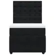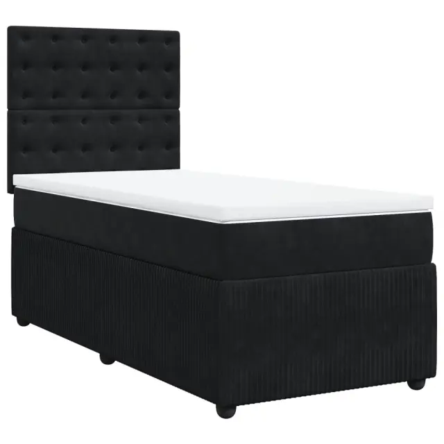 Uporabite to posteljo za uživanje v mirnem spancu! Ponuja maksimalno sprostitev in prijeten spanec. Mehak in udoben material: Vlažna tkanina iz žameta ima mehko in gladko površino, ki zagotavlja prijeten občutek ter vam zagotavlja toploto in popolno udobje.Ležišče z žepkastimi vzmetmi: Ta vzmetnica z žepkastimi vzmetmi ima posamezne žepkaste vzmeti, ki delujejo neodvisno in zagotavljajo prilagojeno podporo, saj se odzivajo le na pritisk na posameznem območju. Takšna zasnova preprečuje, da bi se ležišče "zvijalo skupaj", in zmanjšuje prenos gibanja v primerjavi s tradicionalnimi ležišči z odprtimi vzmetmi. Vsaka žepkasta vzmet podpira telo posebej.Nastavljiva višina vzglavja: Višina vzglavja je nastavljiva po vaših željah.Udobna vzmetnica: Ta nadvložek za vzmetnico z mehko in zračno površino poveča podporo in udobje ter hkrati podaljša življenjsko dobo vaše vzmetnice. Odstranljiva prevleka omogoča enostavno pranje, zato je vzdrževanje enostavno.Letvice za optimalno podporo: Okvir postelje je opremljen z letvicami, ki zagotavljajo osnovno podporo in zračnost vašega ležišča. Dobro je vedeti:Zaradi higienskih razlogov vzmetnice ni mogoče vrniti po odstranitvi ali odprtju embalaže.Posteljni okvir z vzglavjem:Barva: ČrnaMaterial: Žamet (100 % poliester), vezan les, konstruiran lesDimenzije: 200 x 90 x 140,5/150,5 cm (D x Š x V)Utrjene plastične nogicePotrebno sestavljanje: DaVzmetnica:Barva: Bela in črnaMaterial: Žamet (100 % poliester)Material polnila: Žepkaste vzmeti, penaTrdnost: SrednjaDimenzije: 90 x 200 x 20 cm (Š x D x V)Nadvzmetnica:Barva: BelaMaterial: Blago (100 % poliester)Material polnila: PenaDimenzije: 90 x 200 x 5 cm (Š x D x V)Odstranljiva in pralna prevlekaPaket vsebuje:1 x Posteljni okvir1 x Vzglavje1 x Vzmetnica1 x Nadvložek 3292252