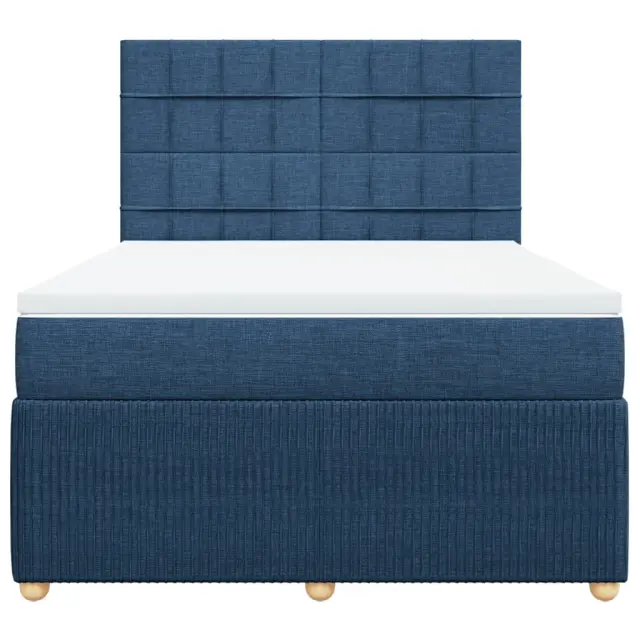 Uporabite to posteljo za uživanje v mirnem spancu! Ponuja maksimalno sprostitev in prijeten spanec. Mehak in trpežen material: Tkanina iz poliestra združuje mehkobo, zračnost in trpežnost ter vam zagotavlja popolno udobje in prijetnost.Ležišče z žepkastimi vzmetmi: Ta vzmetnica z žepkastimi vzmetmi ima posamezne žepkaste vzmeti, ki delujejo neodvisno in zagotavljajo prilagojeno podporo, saj se odzivajo le na pritisk na posameznem območju. Takšna zasnova preprečuje, da bi se ležišče "zvijalo skupaj", in zmanjšuje prenos gibanja v primerjavi s tradicionalnimi ležišči z odprtimi vzmetmi. Vsaka žepkasta vzmet podpira telo posebej.Nastavljiva višina vzglavja: Višina vzglavja je nastavljiva po vaših željah.Udobna vzmetnica: Ta nadvložek za vzmetnico z mehko in zračno površino poveča podporo in udobje ter hkrati podaljša življenjsko dobo vaše vzmetnice. Odstranljiva prevleka omogoča enostavno pranje, zato je vzdrževanje enostavno.Letvice za optimalno podporo: Okvir postelje je opremljen z letvicami, ki zagotavljajo osnovno podporo in zračnost vašega ležišča. Dobro je vedeti:Zaradi higienskih razlogov vzmetnice ni mogoče vrniti po odstranitvi ali odprtju embalaže.Posteljni okvir z vzglavjem:Barva: ModraMaterial: Blago (100 % poliester), vezan les, konstruiran lesDimenzije: 190 x 144 x 140,5/150,5 cm (D x Š x V)Utrjene plastične nogicePodporne noge iz trdnega borovega lesaPotrebno sestavljanje: DaVzmetnica:Barva: Bela in modraMaterial: Blago (100 % poliester)Material polnila: Žepkaste vzmeti, penaTrdnost: SrednjaDimenzije: 140 x 190 x 20 cm (Š x D x V)Nadvzmetnica:Barva: BelaMaterial: Blago (100 % poliester)Material polnila: PenaDimenzije: 140 x 190 x 5 cm (Š x D x V)Odstranljiva in pralna prevlekaPaket vsebuje:1 x Posteljni okvir1 x Vzglavje1 x Vzmetnica1 x Nadvložek 3292057