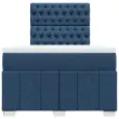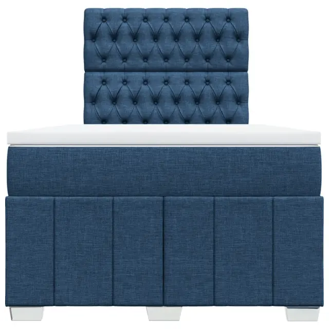 Uporabite to posteljo za uživanje v mirnem spancu! Ponuja maksimalno sprostitev in prijeten spanec. Mehak in trpežen material: Tkanina iz poliestra združuje mehkobo, zračnost in trpežnost ter vam zagotavlja popolno udobje in prijetnost.Ležišče z žepkastimi vzmetmi: Ta vzmetnica z žepkastimi vzmetmi ima posamezne žepkaste vzmeti, ki delujejo neodvisno in zagotavljajo prilagojeno podporo, saj se odzivajo le na pritisk na posameznem območju. Takšna zasnova preprečuje, da bi se ležišče "zvijalo skupaj", in zmanjšuje prenos gibanja v primerjavi s tradicionalnimi ležišči z odprtimi vzmetmi. Vsaka žepkasta vzmet podpira telo posebej.Nastavljiva višina vzglavja: Višina vzglavja je nastavljiva po vaših željah.Udobna vzmetnica: Ta nadvložek za vzmetnico z mehko in zračno površino poveča podporo in udobje ter hkrati podaljša življenjsko dobo vaše vzmetnice. Odstranljiva prevleka omogoča enostavno pranje, zato je vzdrževanje enostavno.Letvice za optimalno podporo: Okvir postelje je opremljen z letvicami, ki zagotavljajo osnovno podporo in zračnost vašega ležišča. Dobro je vedeti:Zaradi higienskih razlogov vzmetnice ni mogoče vrniti po odstranitvi ali odprtju embalaže.Posteljni okvir z vzglavjem:Barva: Modra Material: Blago (100 % poliester), vezan les, konstruiran lesDimenzije: 190 x 120 x 140,5/150,5 cm (D x Š x V)Utrjene plastične nogicePodporne noge iz trdnega borovega lesaPotrebno sestavljanje: DaVzmetnica:Barva: Bela in modraMaterial: Blago (100 % poliester)Material polnila: Žepkaste vzmeti, penaTrdnost: SrednjaDimenzije: 120 x 190 x 20 cm (Š x D x V)Nadvzmetnica:Barva: BelaMaterial: Blago (100 % poliester)Material polnila: PenaDimenzije: 120 x 190 x 5 cm (Š x D x V)Odstranljiva in pralna prevlekaPaket vsebuje:1 x Posteljni okvir1 x Vzglavje1 x Vzmetnica1 x Nadvložek 3291620