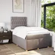 Uporabite to posteljo za uživanje v mirnem spancu! Ponuja maksimalno sprostitev in prijeten spanec. Mehak in trpežen material: Tkanina iz poliestra združuje mehkobo, zračnost in trpežnost ter vam zagotavlja popolno udobje in prijetnost.Ležišče z žepkastimi vzmetmi: Ta vzmetnica z žepkastimi vzmetmi ima posamezne žepkaste vzmeti, ki delujejo neodvisno in zagotavljajo prilagojeno podporo, saj se odzivajo le na pritisk na posameznem območju. Takšna zasnova preprečuje, da bi se ležišče "zvijalo skupaj", in zmanjšuje prenos gibanja v primerjavi s tradicionalnimi ležišči z odprtimi vzmetmi. Vsaka žepkasta vzmet podpira telo posebej.Nastavljiva višina vzglavja: Višina vzglavja je nastavljiva po vaših željah.Udobna vzmetnica: Ta nadvložek za vzmetnico z mehko in zračno površino poveča podporo in udobje ter hkrati podaljša življenjsko dobo vaše vzmetnice. Odstranljiva prevleka omogoča enostavno pranje, zato je vzdrževanje enostavno.Letvice za optimalno podporo: Okvir postelje je opremljen z letvicami, ki zagotavljajo osnovno podporo in zračnost vašega ležišča. Dobro je vedeti:Zaradi higienskih razlogov vzmetnice ni mogoče vrniti po odstranitvi ali odprtju embalaže.Posteljni okvir z vzglavjem:Barva: Taupe Material: Blago (100 % poliester), vezan les, konstruiran lesDimenzije: 200 x 120 x 140,5/150,5 cm (D x Š x V)Utrjene plastične nogicePodporne noge iz trdnega borovega lesaPotrebno sestavljanje: DaVzmetnica:Barva: Bela in taupeMaterial: Blago (100 % poliester)Material polnila: Žepkaste vzmeti, penaTrdnost: SrednjaDimenzije: 120 x 200 x 20 cm (Š x D x V)Nadvzmetnica:Barva: BelaMaterial: Blago (100 % poliester)Material polnila: PenaDimenzije: 120 x 200 x 5 cm (D x Š x V)Odstranljiva in pralna prevlekaPaket vsebuje:1 x Posteljni okvir1 x Vzglavje1 x Vzmetnica1 x Nadvložek 3291258