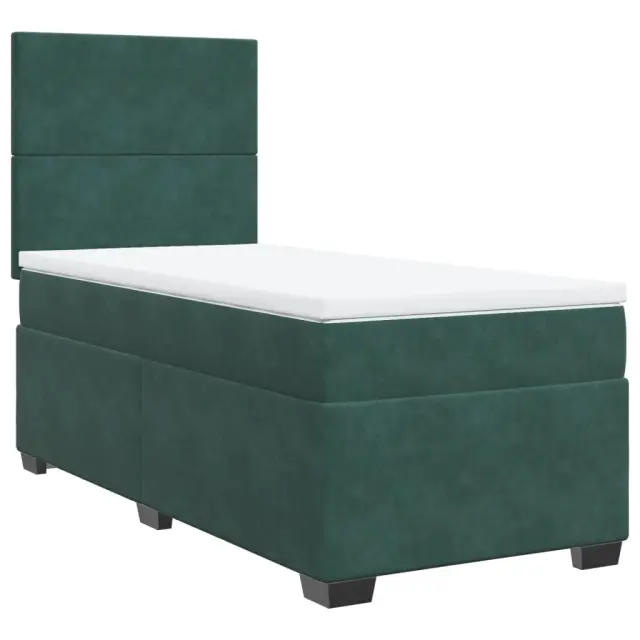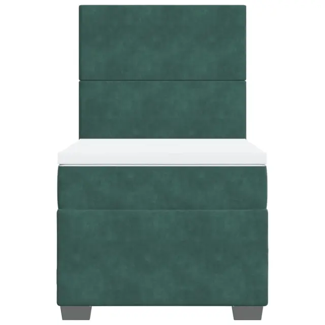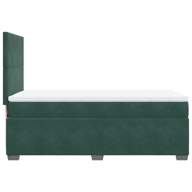 Uporabite to posteljo za uživanje v mirnem spancu! Ponuja maksimalno sprostitev in prijeten spanec. Mehak in udoben material: Vlažna tkanina iz žameta ima mehko in gladko površino, ki zagotavlja prijeten občutek ter vam zagotavlja toploto in popolno udobje.Ležišče z žepkastimi vzmetmi: Ta vzmetnica z žepkastimi vzmetmi ima posamezne žepkaste vzmeti, ki delujejo neodvisno in zagotavljajo prilagojeno podporo, saj se odzivajo le na pritisk na posameznem območju. Takšna zasnova preprečuje, da bi se ležišče "zvijalo skupaj", in zmanjšuje prenos gibanja v primerjavi s tradicionalnimi ležišči z odprtimi vzmetmi. Vsaka žepkasta vzmet podpira telo posebej.Nastavljiva višina vzglavja: Višina vzglavja je nastavljiva po vaših željah.Udobna vzmetnica: Ta nadvložek za vzmetnico z mehko in zračno površino poveča podporo in udobje ter hkrati podaljša življenjsko dobo vaše vzmetnice. Odstranljiva prevleka omogoča enostavno pranje, zato je vzdrževanje enostavno.Letvice za optimalno podporo: Okvir postelje je opremljen z letvicami, ki zagotavljajo osnovno podporo in zračnost vašega ležišča. Dobro je vedeti:Zaradi higienskih razlogov vzmetnice ni mogoče vrniti po odstranitvi ali odprtju embalaže.Posteljni okvir z vzglavjem:Barva: Temno zelenaMaterial: Žamet (100 % poliester), vezan les, konstruiran lesDimenzije: 200 x 80 x 140,5/150,5 cm (D x Š x V)Utrjene plastične nogicePotrebno sestavljanje: DaVzmetnica:Barva: Bela in temno zelenaMaterial: Žamet (100 % poliester)Material polnila: Žepkaste vzmeti, penaTrdnost: SrednjaDimenzije: 80 x 200 x 20 cm (Š x D x V)Nadvzmetnica:Barva: BelaMaterial: Blago (100 % poliester)Material polnila: PenaDimenzije: 80 x 200 x 5 cm (Š x D x V)Odstranljiva in pralna prevlekaPaket vsebuje:1 x Posteljni okvir1 x Vzglavje1 x Vzmetnica1 x Nadvložek 3290759