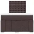 Uporabite to posteljo za uživanje v mirnem spancu! Ponuja maksimalno sprostitev in prijeten spanec. Mehak in trpežen material: Tkanina iz poliestra združuje mehkobo, zračnost in trpežnost ter vam zagotavlja popolno udobje in prijetnost.Ležišče z žepkastimi vzmetmi: Ta vzmetnica z žepkastimi vzmetmi ima posamezne žepkaste vzmeti, ki delujejo neodvisno in zagotavljajo prilagojeno podporo, saj se odzivajo le na pritisk na posameznem območju. Takšna zasnova preprečuje, da bi se ležišče "zvijalo skupaj", in zmanjšuje prenos gibanja v primerjavi s tradicionalnimi ležišči z odprtimi vzmetmi. Vsaka žepkasta vzmet podpira telo posebej.Nastavljiva višina vzglavja: Višina vzglavja je nastavljiva po vaših željah.Udobna vzmetnica: Ta nadvložek za vzmetnico z mehko in zračno površino poveča podporo in udobje ter hkrati podaljša življenjsko dobo vaše vzmetnice. Odstranljiva prevleka omogoča enostavno pranje, zato je vzdrževanje enostavno.Letvice za optimalno podporo: Okvir postelje je opremljen z letvicami, ki zagotavljajo osnovno podporo in zračnost vašega ležišča. Dobro je vedeti:Zaradi higienskih razlogov vzmetnice ni mogoče vrniti po odstranitvi ali odprtju embalaže.Posteljni okvir z vzglavjem:Barva: Temno rjavaMaterial: Blago (100 % poliester), vezan les, konstruiran lesDimenzije: 190 x 120 x 140,5/150,5 cm (D x Š x V)Utrjene plastične nogicePodporne noge iz trdnega borovega lesaPotrebno sestavljanje: DaVzmetnica:Barva: Bela in temno rjavaMaterial: Blago (100 % poliester)Material polnila: Žepkaste vzmeti, penaTrdnost: SrednjaDimenzije: 120 x 190 x 20 cm (Š x D x V)Nadvzmetnica:Barva: BelaMaterial: Blago (100 % poliester)Material polnila: PenaDimenzije: 120 x 190 x 5 cm (Š x D x V)Odstranljiva in pralna prevlekaPaket vsebuje:1 x Posteljni okvir1 x Vzglavje1 x Vzmetnica1 x Nadvložek 3291624