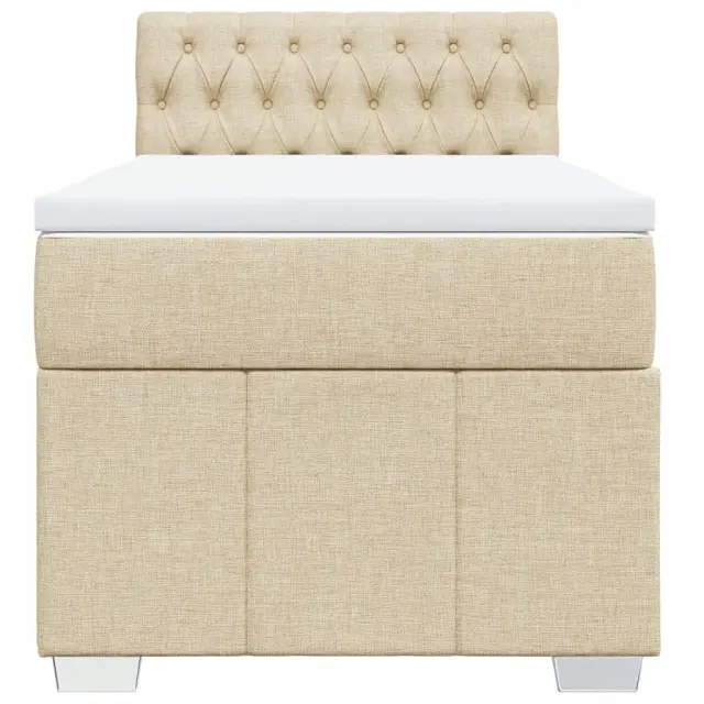 Uporabite to posteljo za uživanje v mirnem spancu! Ponuja maksimalno sprostitev in prijeten spanec. Mehak in trpežen material: Tkanina iz poliestra združuje mehkobo, zračnost in trpežnost ter vam zagotavlja popolno udobje in prijetnost.Ležišče z žepkastimi vzmetmi: Ta vzmetnica z žepkastimi vzmetmi ima posamezne žepkaste vzmeti, ki delujejo neodvisno in zagotavljajo prilagojeno podporo, saj se odzivajo le na pritisk na posameznem območju. Takšna zasnova preprečuje, da bi se ležišče "zvijalo skupaj", in zmanjšuje prenos gibanja v primerjavi s tradicionalnimi ležišči z odprtimi vzmetmi. Vsaka žepkasta vzmet podpira telo posebej.Nastavljiva višina vzglavja: Višina vzglavja je nastavljiva po vaših željah.Udobna vzmetnica: Ta nadvložek za vzmetnico z mehko in zračno površino poveča podporo in udobje ter hkrati podaljša življenjsko dobo vaše vzmetnice. Odstranljiva prevleka omogoča enostavno pranje, zato je vzdrževanje enostavno.Letvice za optimalno podporo: Okvir postelje je opremljen z letvicami, ki zagotavljajo osnovno podporo in zračnost vašega ležišča. Dobro je vedeti:Zaradi higienskih razlogov vzmetnice ni mogoče vrniti po odstranitvi ali odprtju embalaže.Posteljni okvir z vzglavjem:Barva: KremMaterial: Blago (100 % poliester), vezan les, konstruiran lesDimenzije: 200 x 80 x 100,5 cm (D x Š x V)Utrjene plastične nogicePotrebno sestavljanje: DaVzmetnica:Barva: Bela in kremnaMaterial: Blago (100 % poliester)Material polnila: Žepkaste vzmeti, penaTrdnost: SrednjaDimenzije: 80 x 200 x 20 cm (Š x D x V)Nadvzmetnica:Barva: BelaMaterial: Blago (100 % poliester)Material polnila: PenaDimenzije: 80 x 200 x 5 cm (Š x D x V)Odstranljiva in pralna prevlekaPaket vsebuje:1 x Posteljni okvir1 x Vzglavje1 x Vzmetnica1 x Nadvložek 3286907
